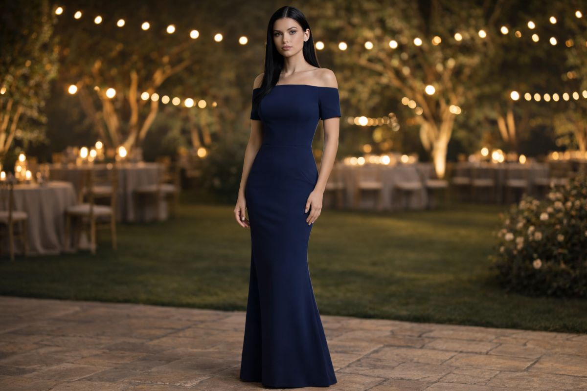 Off shoulder and one shoulder evening can also work beautifully when the bodice is structured and streamlined. The goal is controlled exposure, not excessive fabric volume across the neckline.