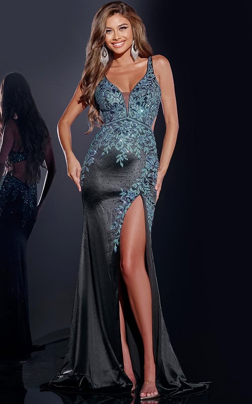 Backless styles are available across the full Jovani color range. Darker shades like black and navy create contrast against skin, while metallics and jewel tones catch light across both fabric and exposed back. Red and emerald photograph well in backless cuts because the color draws attention while the open back adds dimension. Budget-friendly options are available in our prom dresses under $500 collection with the same construction quality as higher price points.