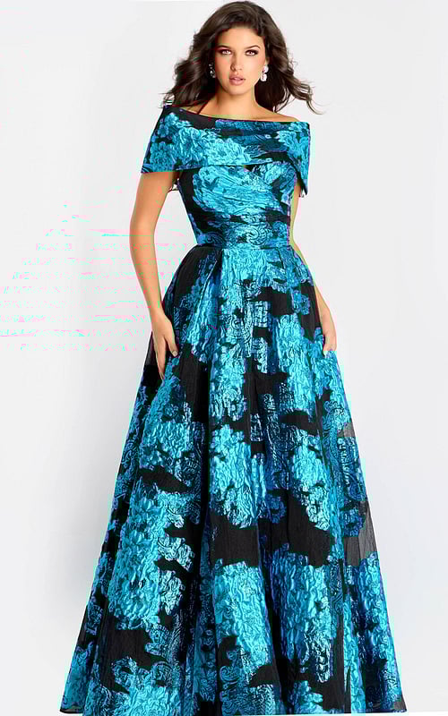 Off Shoulder Metallic Jacquard Ball Gown 47630