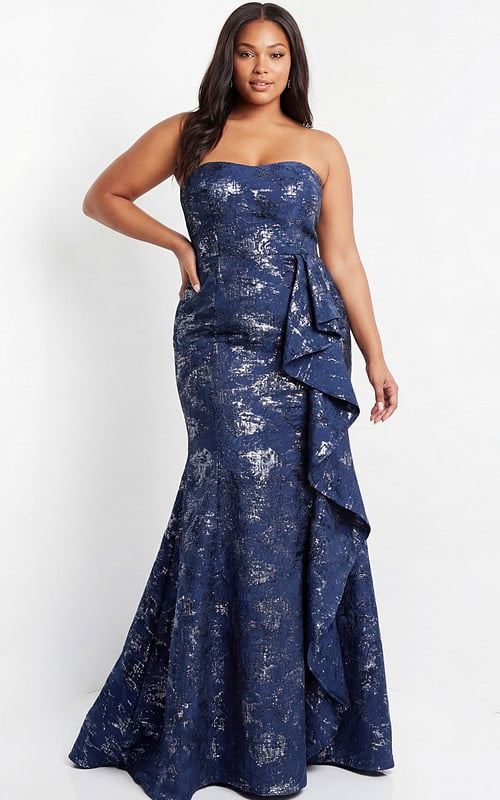 Browse Jovani’s collection of mother of the bride gowns in sizes 14 through 24 to find the silhouette that matches your child’s wedding. Each dress is constructed with the support, structure, and quality details that plus size figures deserve. Visit an authorized retailer to try styles in person and experience how proper plus size construction creates both fit and flattery.