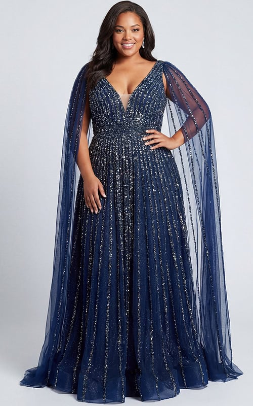 Plus size mother of the bride dresses in sizes 14 through 24 feature the same construction quality and design details as our entire collection with fit adjustments for curvier figures. Jovani engineers plus size styles with strategic support through steel boning, built-in cups, and power mesh panels that smooth and shape without compression. Our plus size gowns come in A-line, sheath, column, and mermaid silhouettes across lace, beaded, chiffon, and crepe fabrics. Each dress includes extra reinforcement at stress points and wider straps where needed for comfortable all-day wear at ceremonies and receptions. Available for formal, semi-formal, and outdoor weddings.