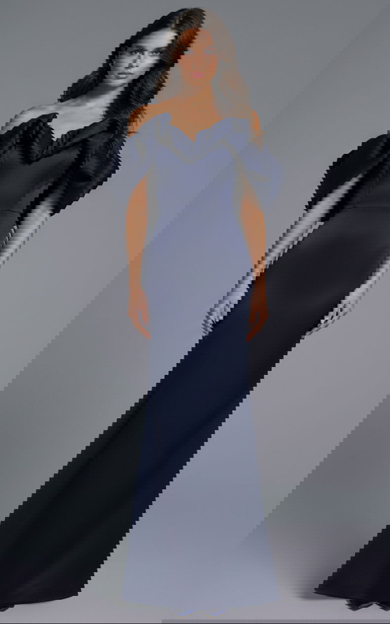 Elevate your elegance with this stunning off-the-shoulder mermaid gown. Made from luxurious satin, the dress features a striking off-the-shoulder neckline with eye-catching ruffles. The mermaid silhouette hugs your curves and flares out at the knee, creating a show-stopping look. Perfect for formal occasions and sophisticated evenings.