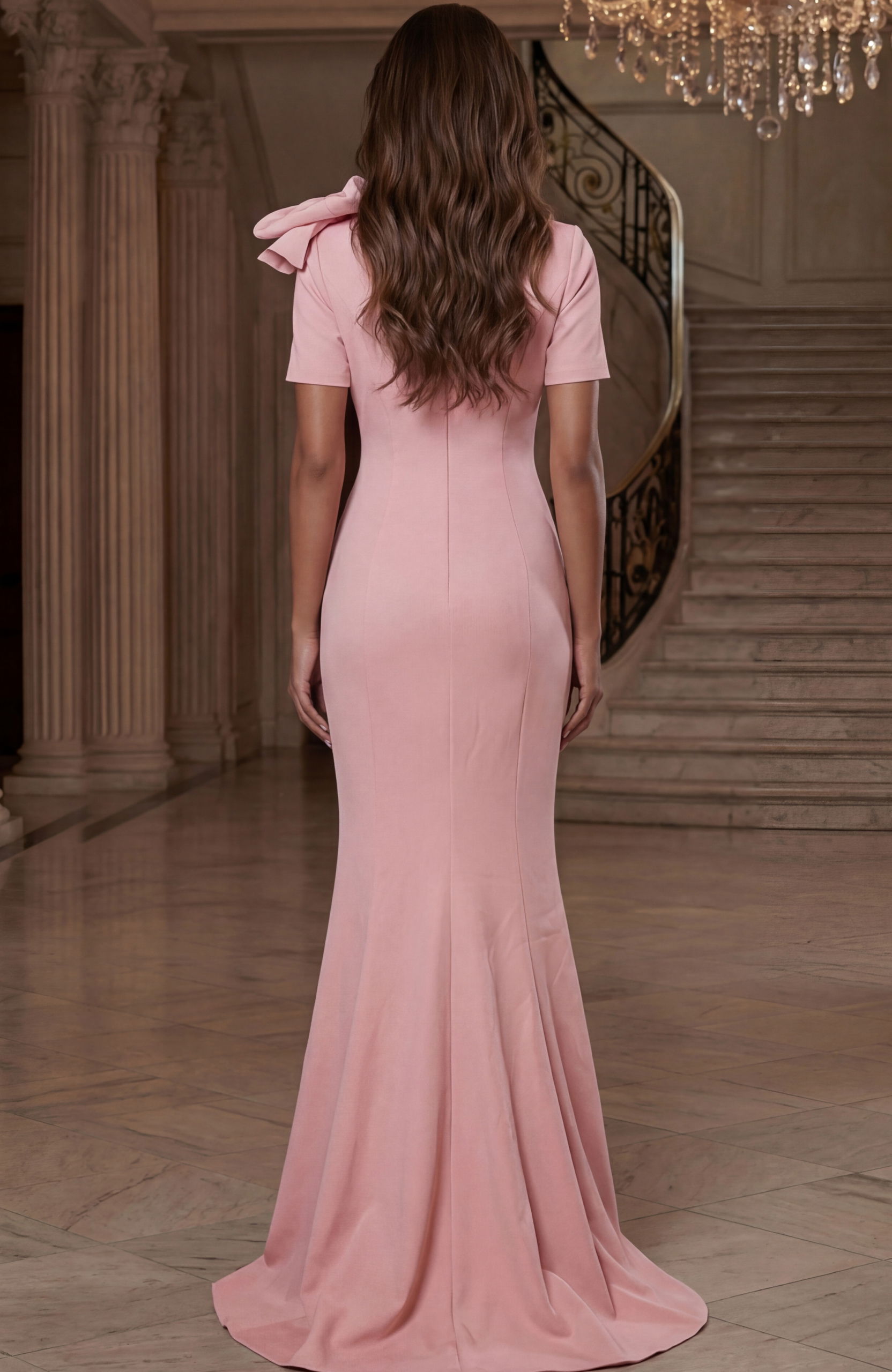 Bow Shoulder Short Sleeve Evening Gown 48945