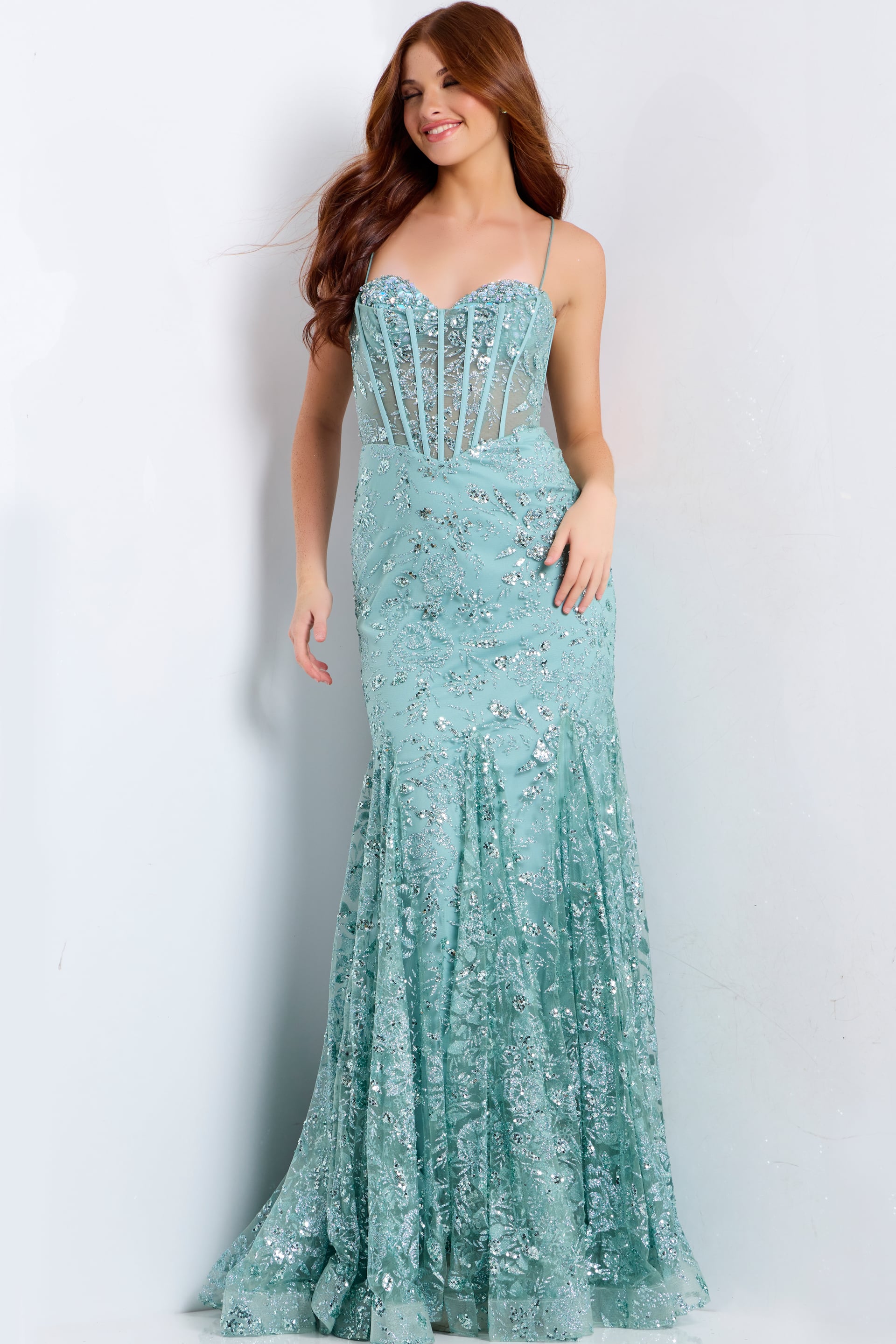 Beaded Dress with Corset Bodice and Lace Up Back 45759