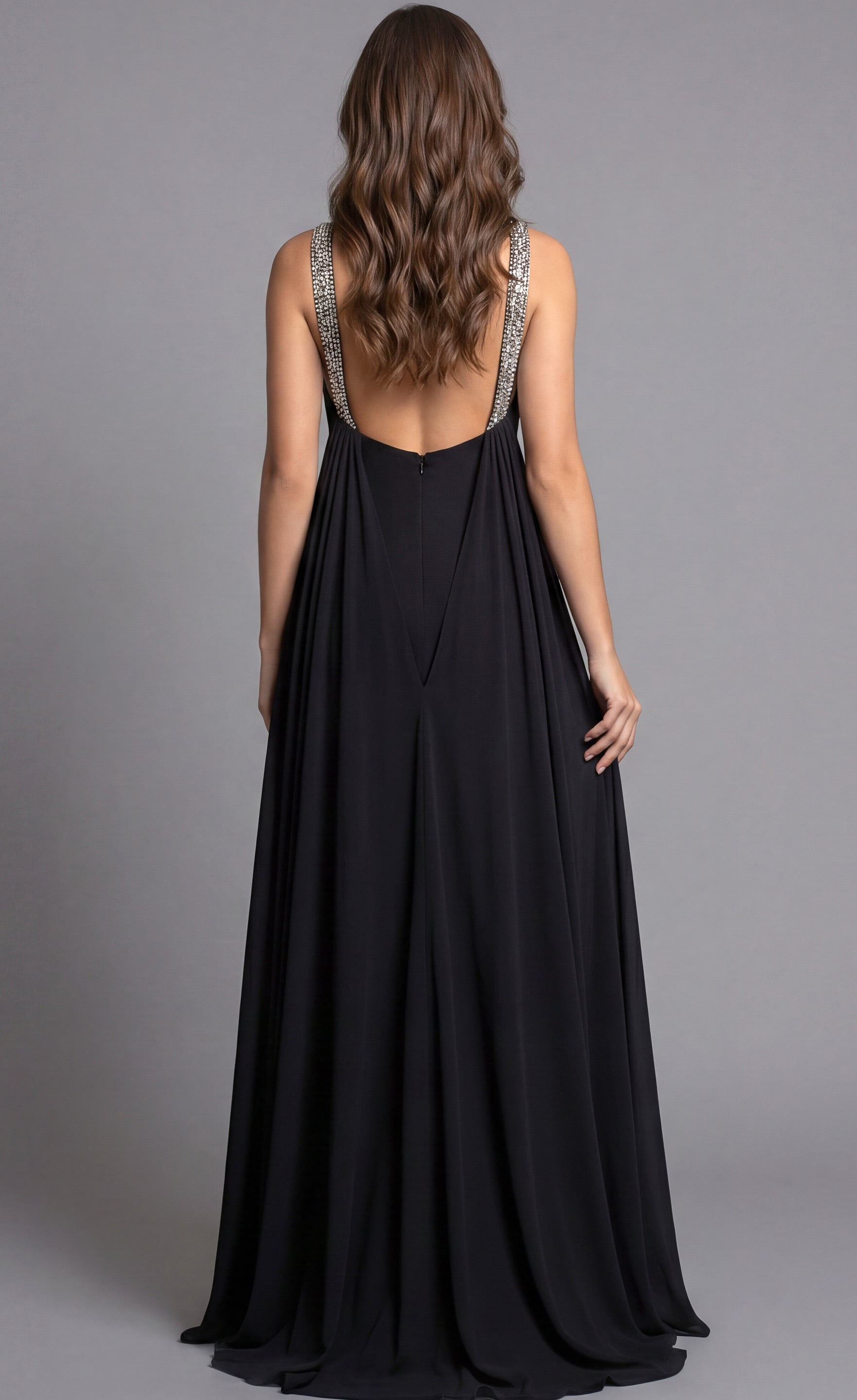 Beaded Neckline With Front Keyhole Slit