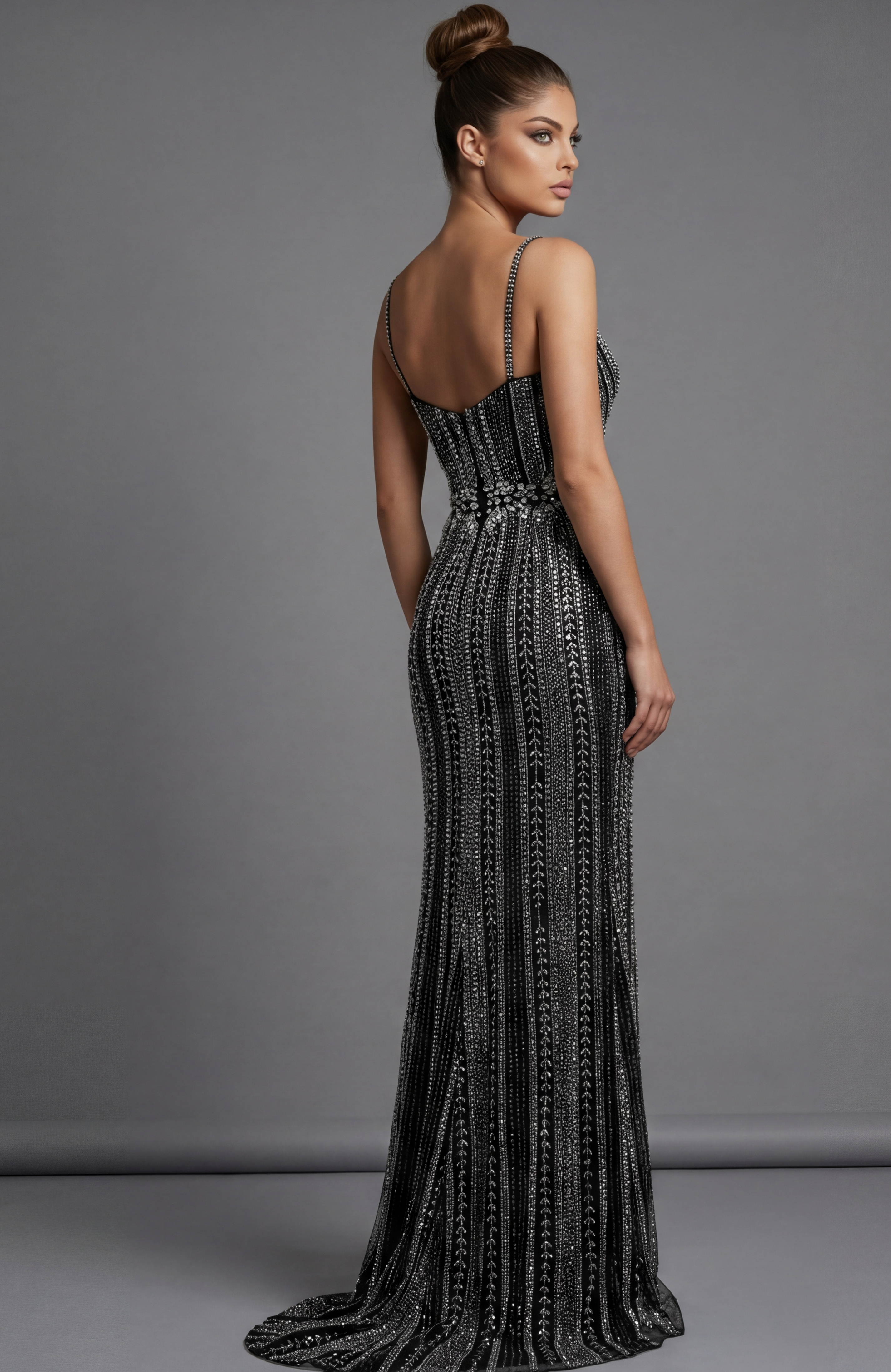 Fully Beaded Design, Thigh-High Slit, Sheer Corset Bodice, Defined Waist Embellishment