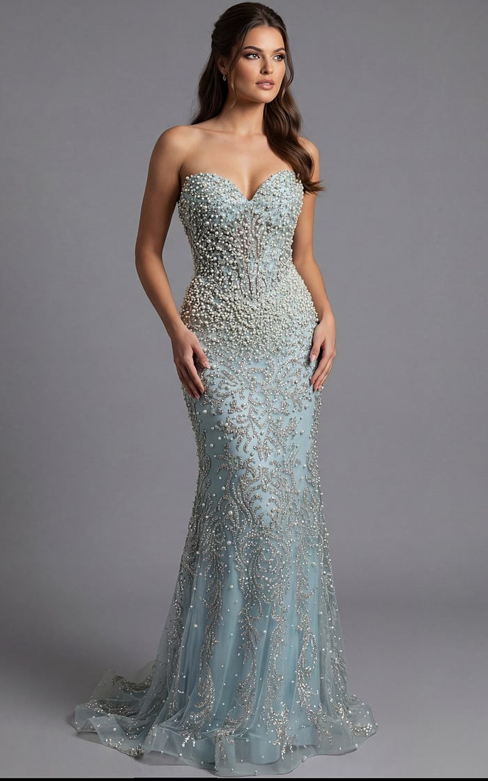 Off Shoulder Brocade Gown With Draped Waist Detail 49165