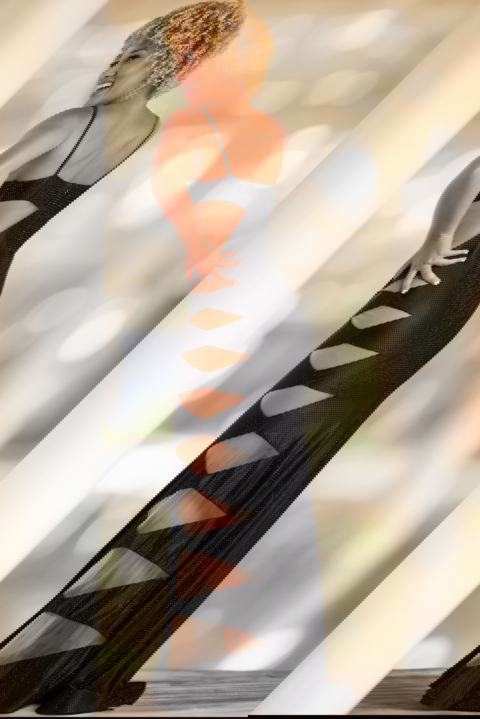 Turn heads in this stunning Cut-Out Beaded Mermaid Gown. This elegant dress features an alluring cut-out design, beaded details, and a long floor-length mermaid silhouette. Crafted from luxurious crepe fabric, this gown showcases a sleeveless halter neckline and an open back style, making it perfect for a glamorous evening event.