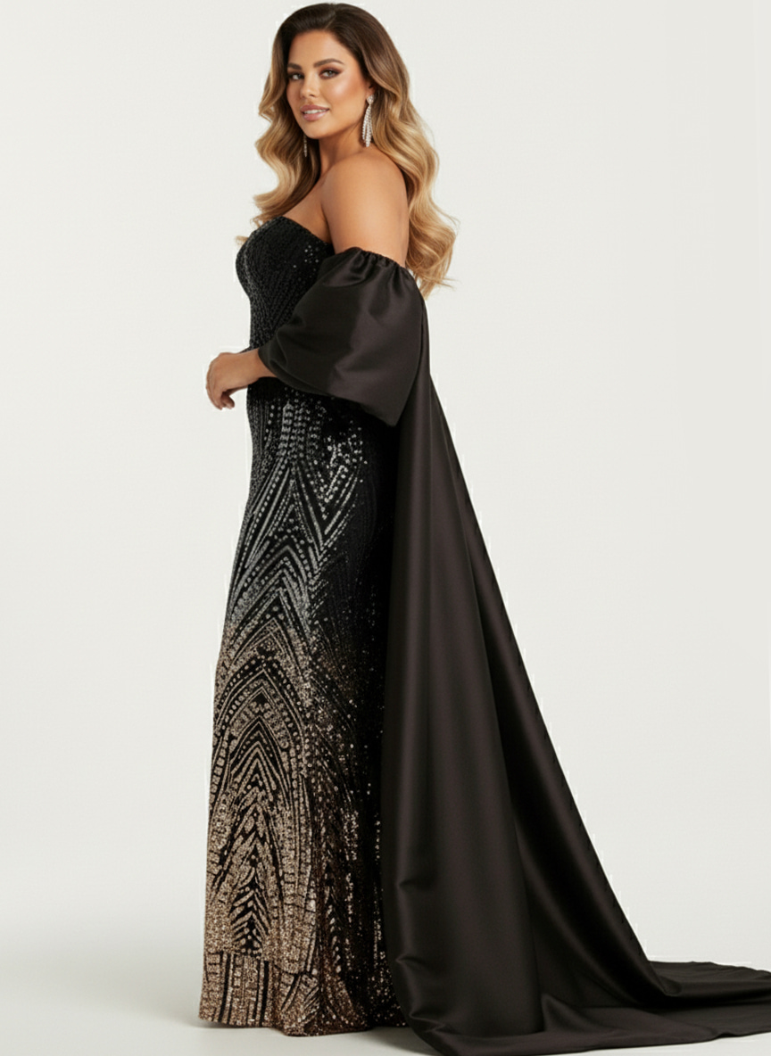 The off-the-shoulder satin long cape drapes elegantly over your shoulders and down your back, adding a sense of drama and sophistication to your overall appearance.