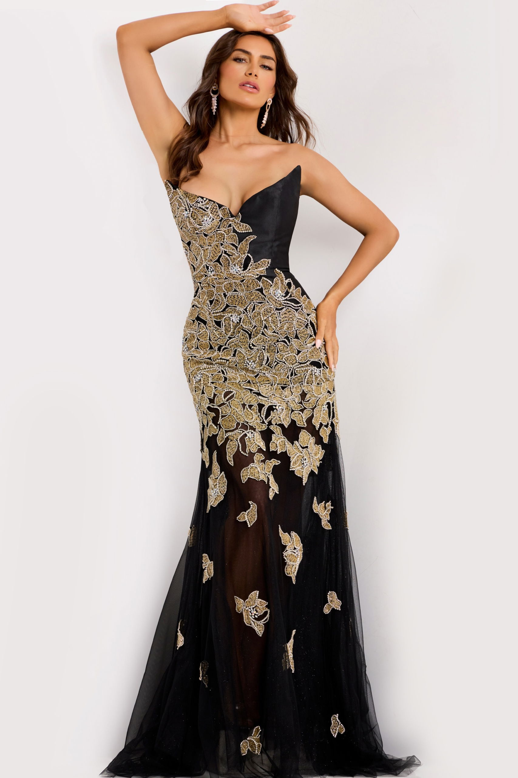 Black Gown with Gold Embroidered Appliqué 45604