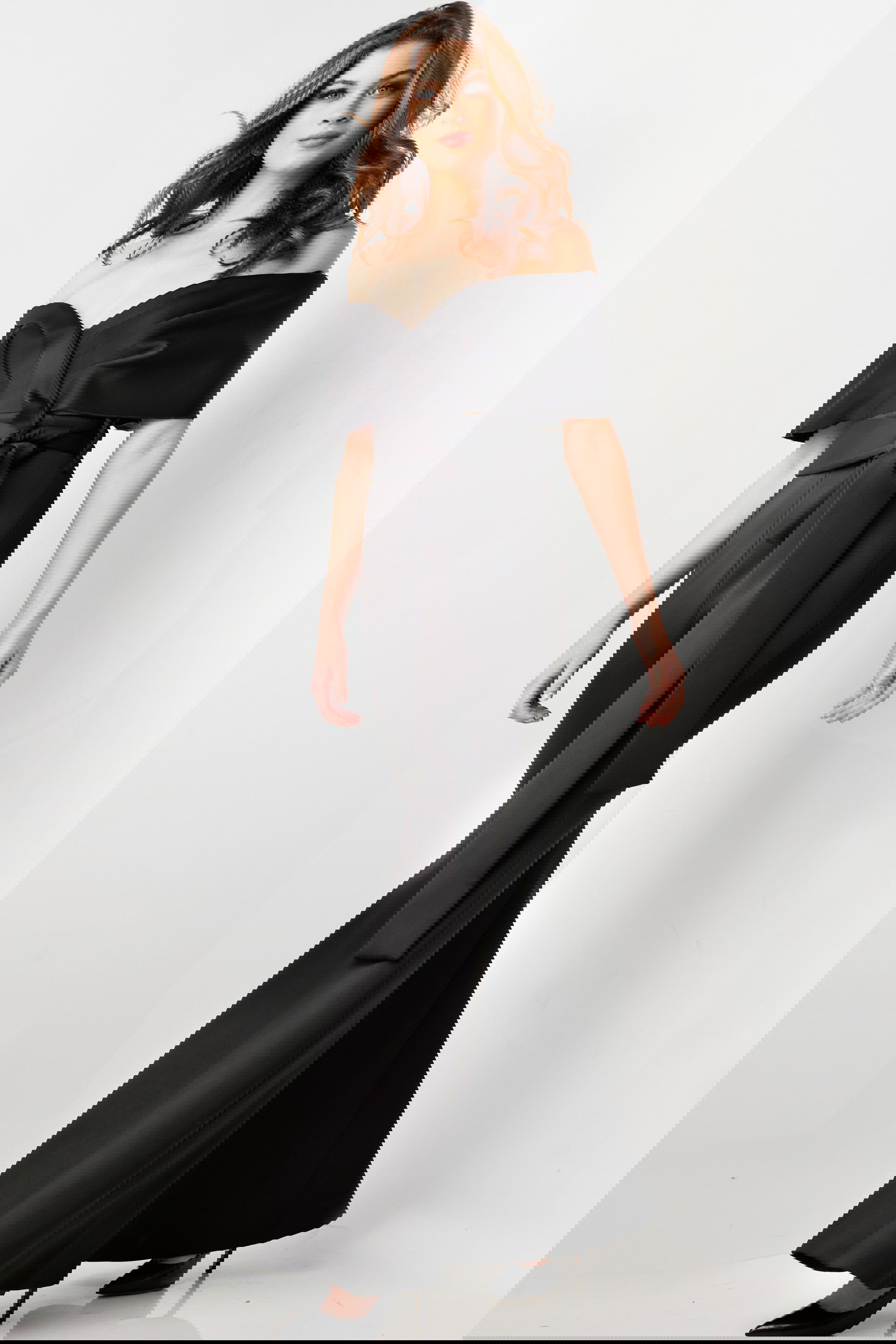 This elegant and contemporary jumpsuit in classic black showcases an off-the-shoulder neckline designed for an effortlessly chic look. Crafted from high-quality satin fabric, the jumpsuit features wide-leg pants for a flattering fit and a wrap-around waist tie for added sophistication. Perfect for both formal and semi-formal occasions, this jumpsuit strikes the perfect balance between modern style and timeless elegance.