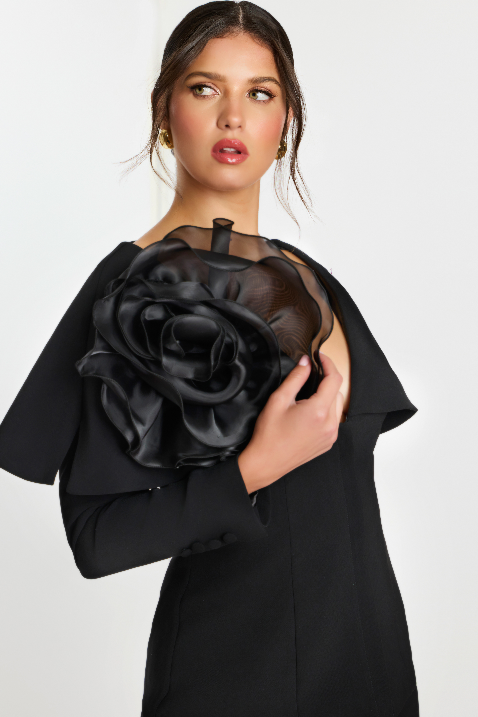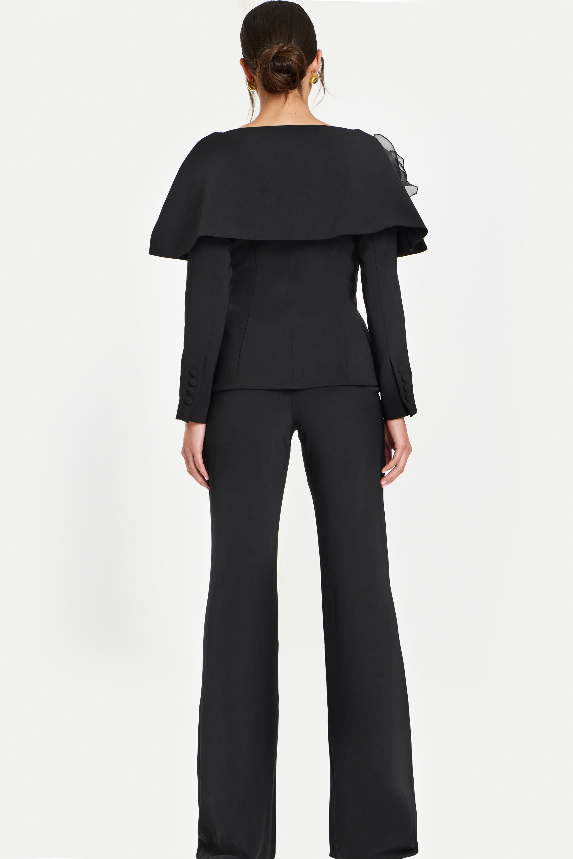 Black Pantsuit with Sheer Shoulder Flower 45177