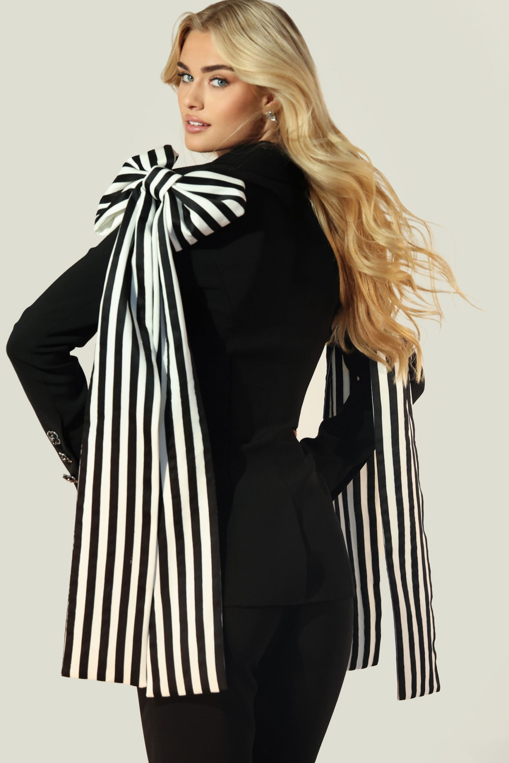 Black Tailored Suit With Striped Oversized Bow 44885
