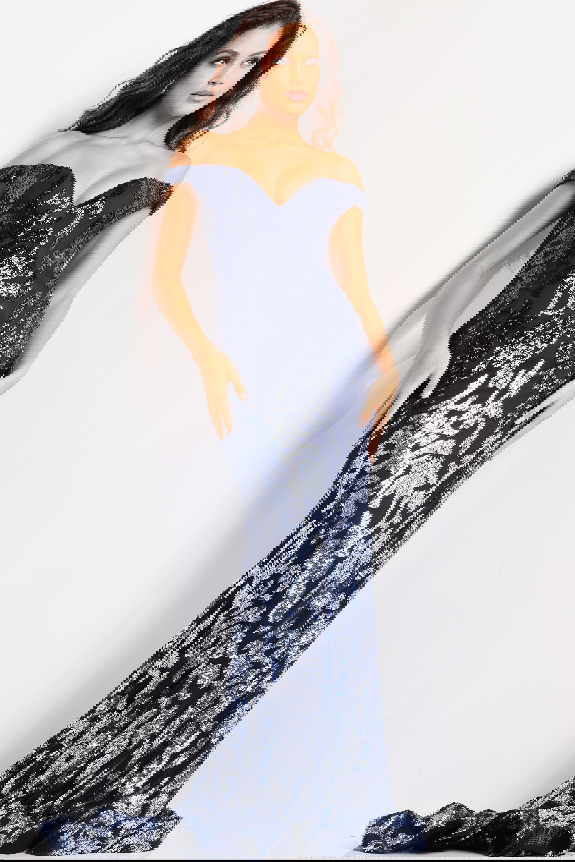The back style is straight, offering a clean and classic look that complements the fitted style of the dress. The off-the-shoulder sweetheart neckline adds a romantic and feminine touch, framing the shoulders and collarbone in a flattering manner. The sleeveless design allows for a graceful and timeless appearance.