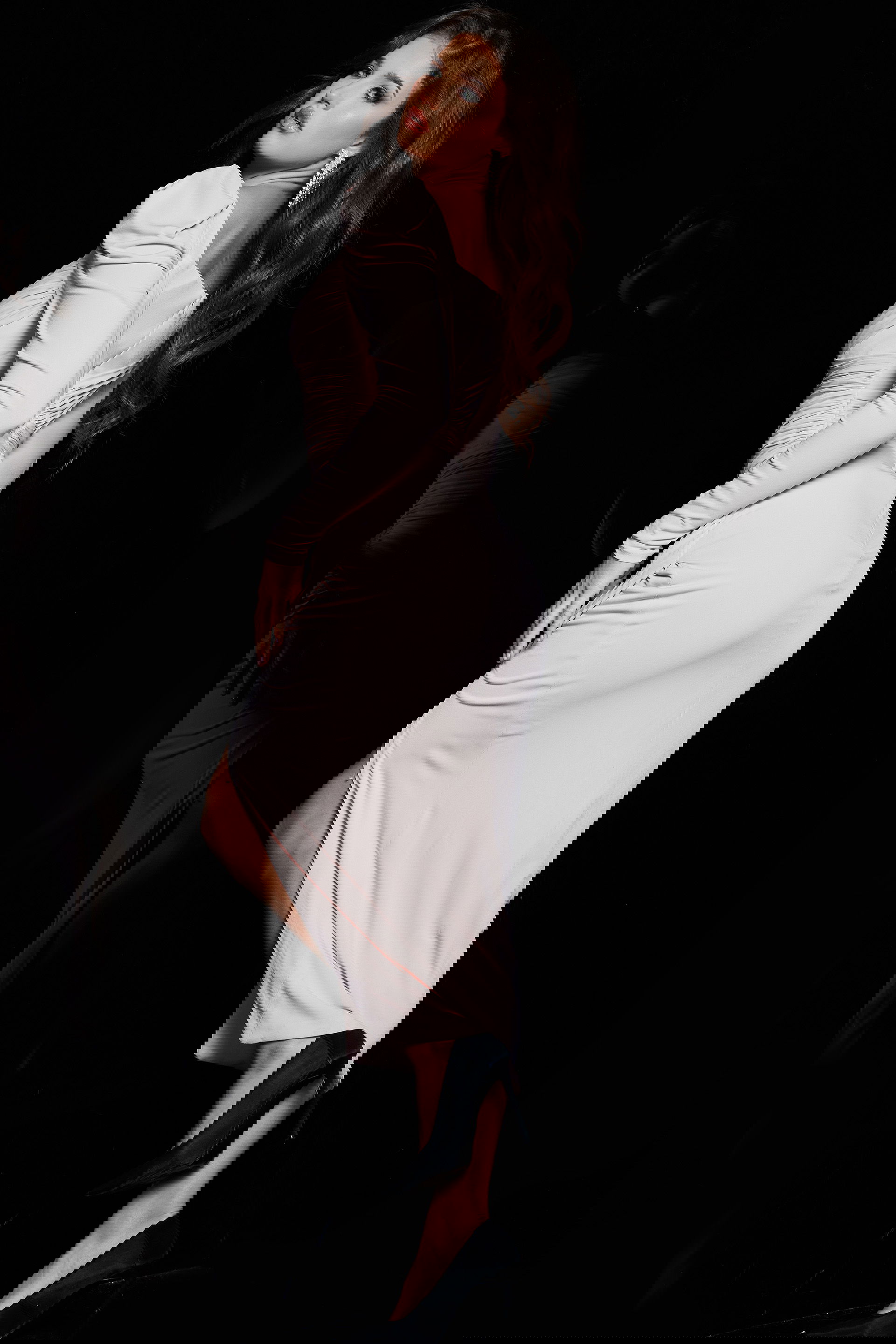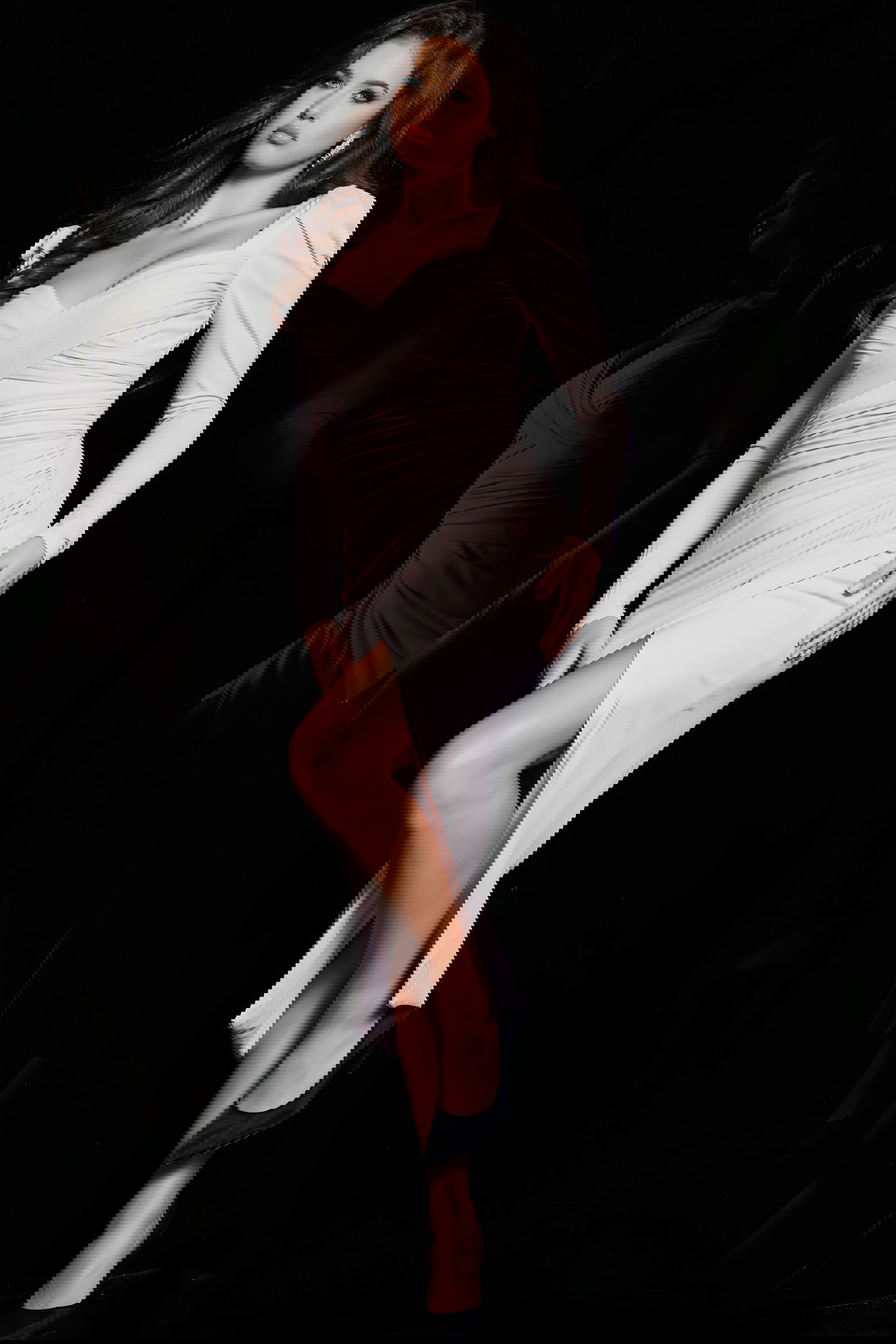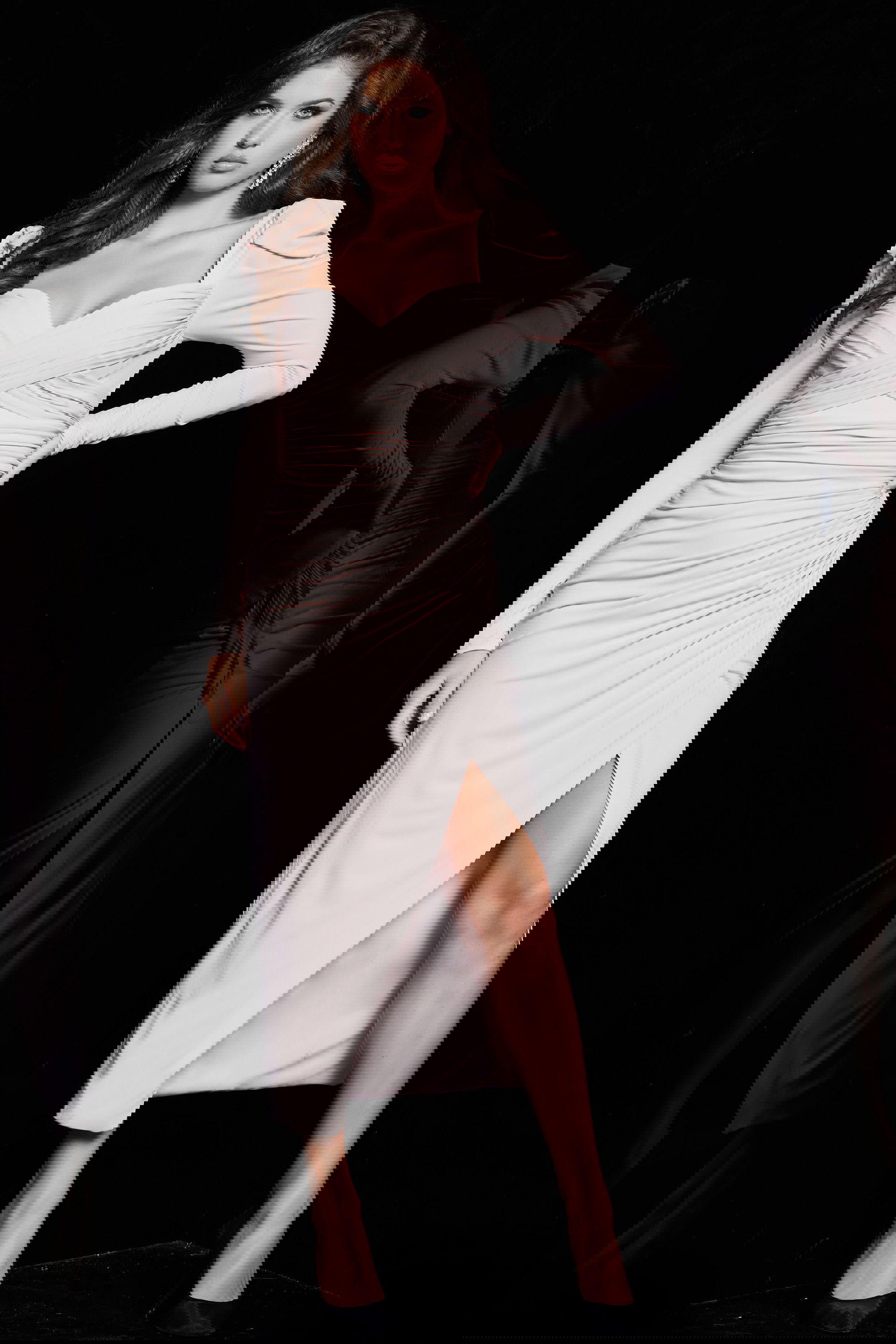 This stunning ruffled sleeve midi dress is designed to make a statement. Featuring a sweetheart neckline and high slit, it creates an elegant and sexy silhouette. Made from soft jersey fabric, it ensures comfort while maintaining a sophisticated look. Perfect for evening events, this dress promises to highlight your figure and add a touch of glamour to any occasion.