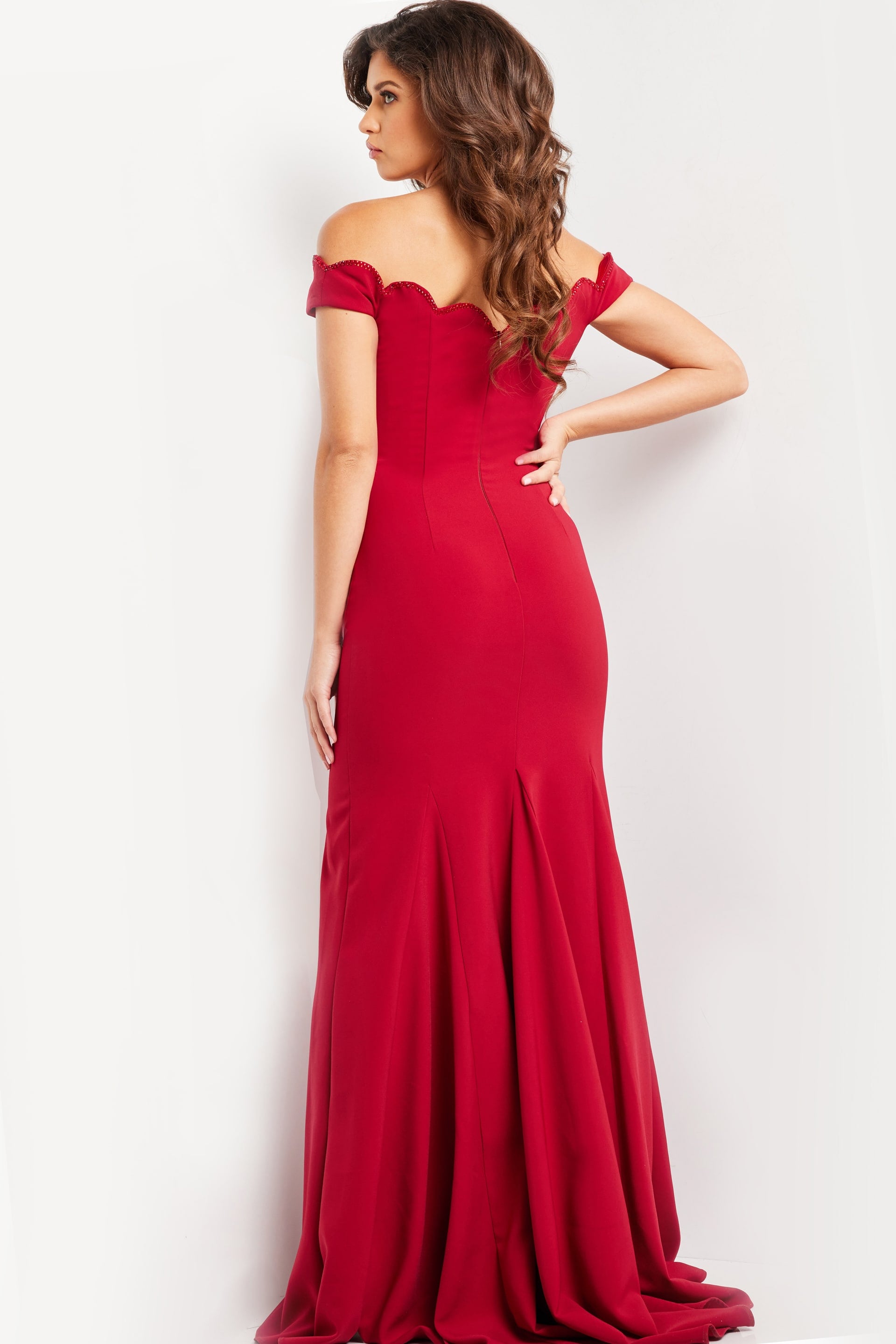 The Jovani 37147 is a striking evening gown tailored for formal occasions, black-tie events, and weddings, making it an ideal choice for a sophisticated and stylish guest. Crafted from luxurious crepe, the dress exudes refinement and sophistication, with the fabric draping elegantly to create a polished and timeless look.
