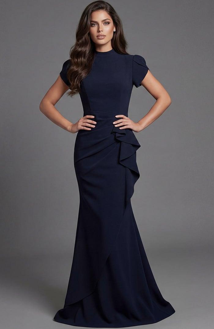 Sleeveless Ruffle Detail Fitted Evening Gown 48193