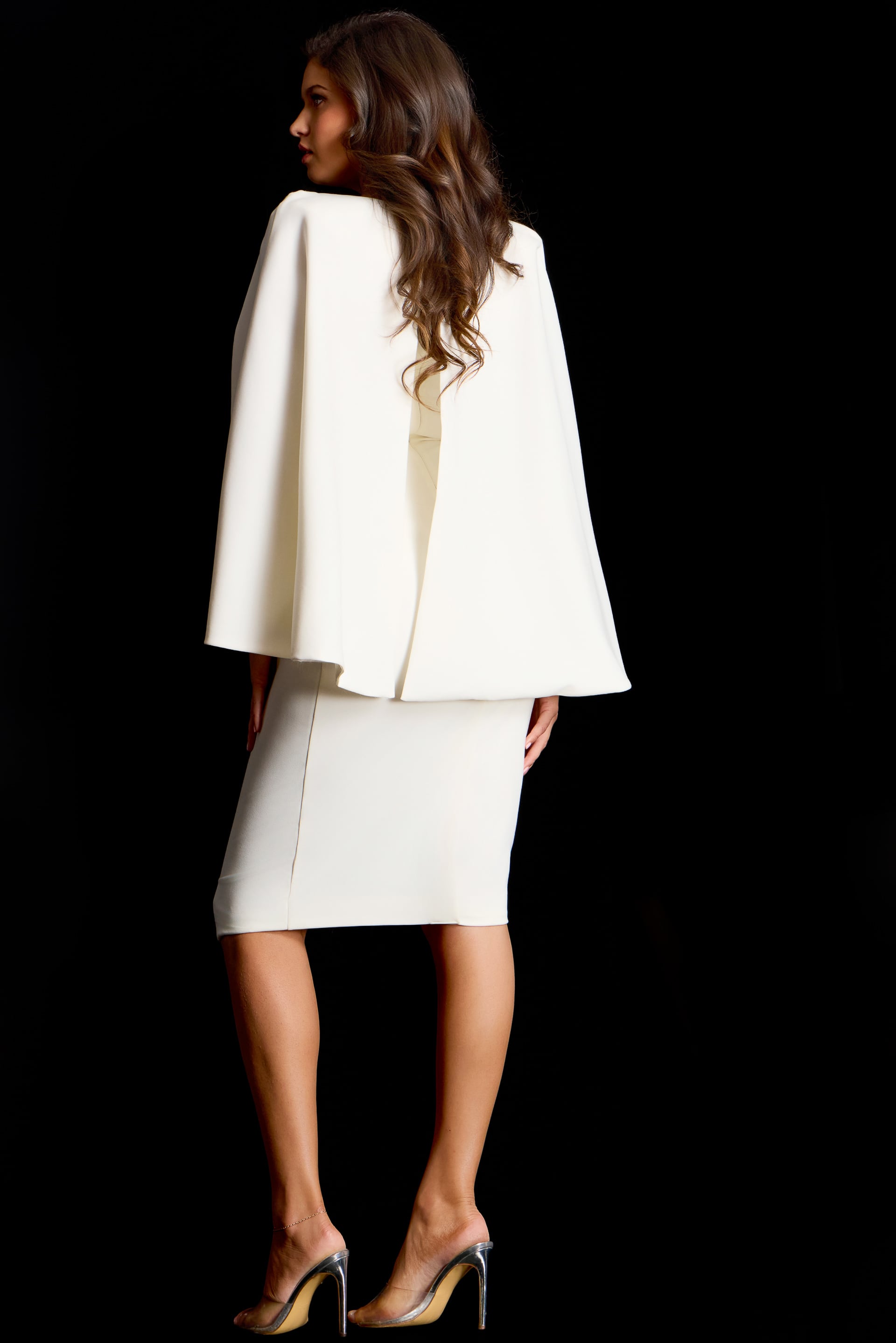 Elegant Long Sleeve V Neck Midi Dress With Sculpted Waist 51637