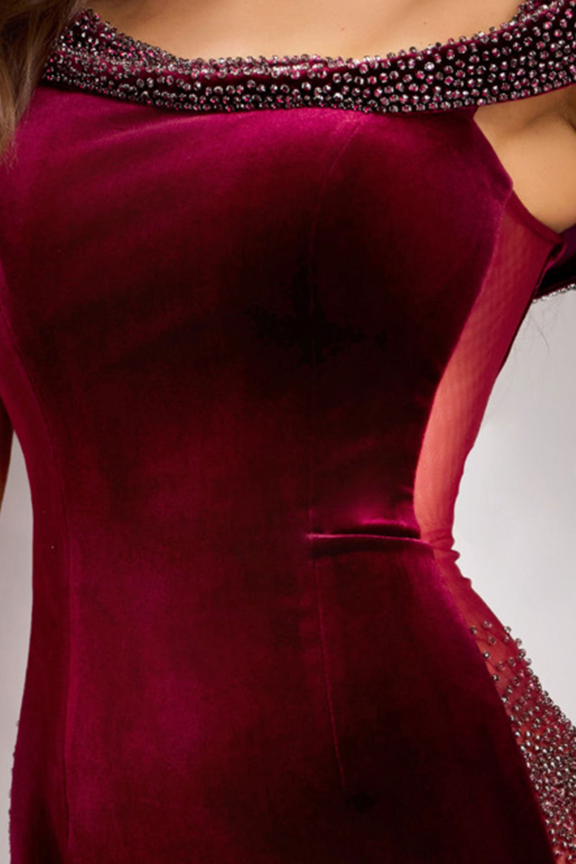 Elegant Long Sleeve Evening Gown With Side Tie Detail 51618