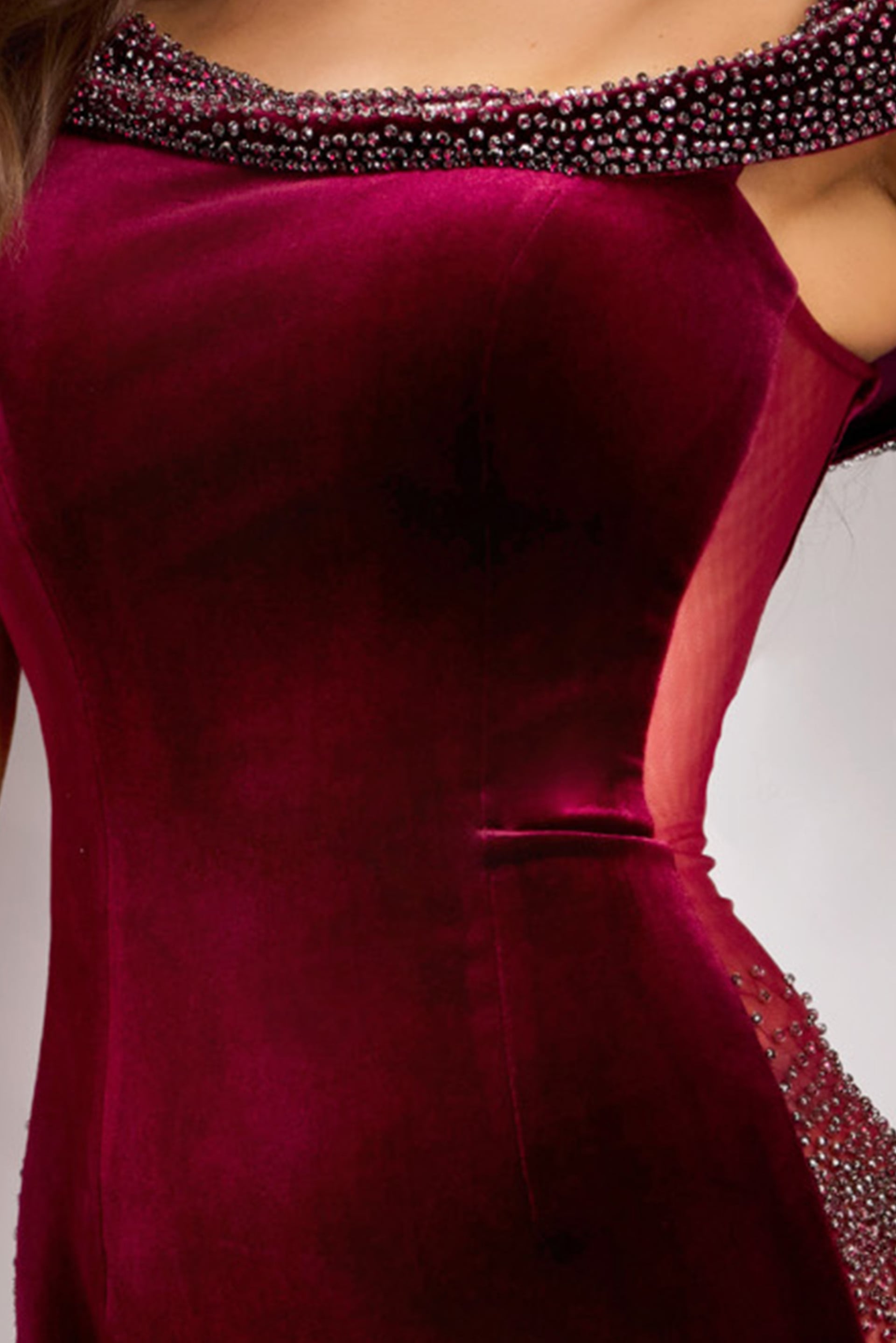Chocolate One Shoulder Velvet Evening Gown 42975