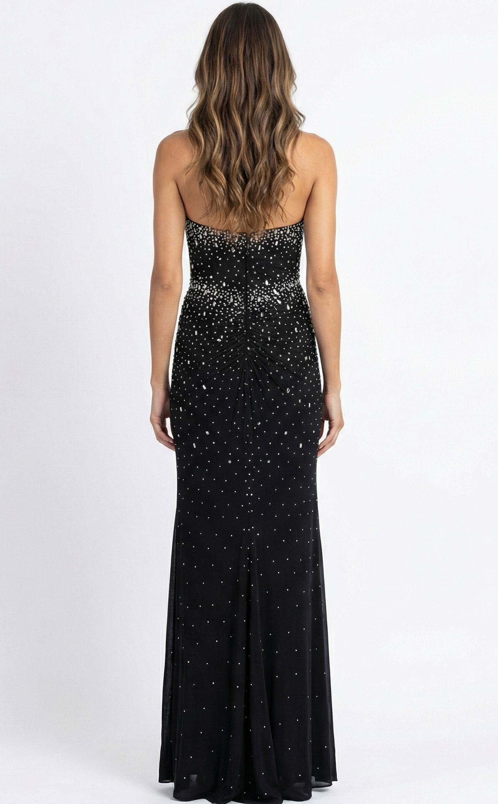 Beaded Bodice, Ruched Waist, Fitted Shape, Subtle Train