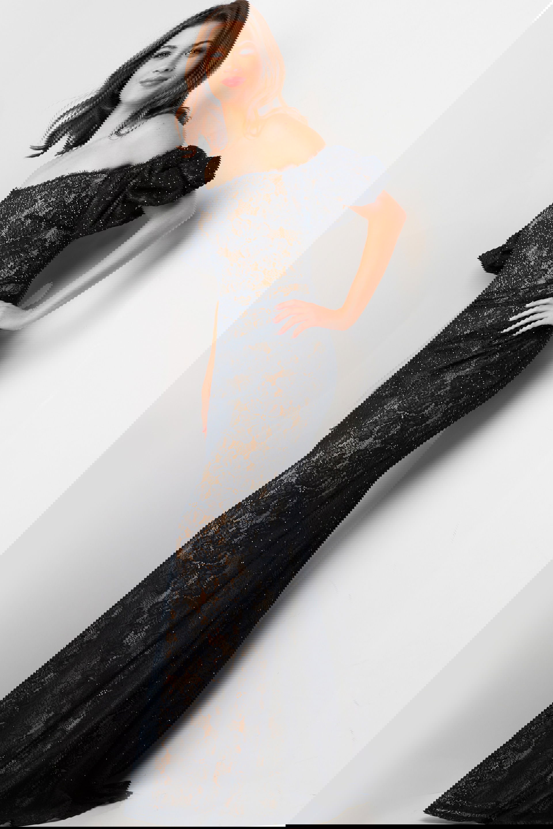 The Jovani 23813 evening dress is a stunning choice tailored specifically for mothers of the bride, perfect for elegant black-tie affairs. Crafted from exquisite lace, this dress boasts a fitted silhouette that beautifully accentuates the figure with grace and sophistication.