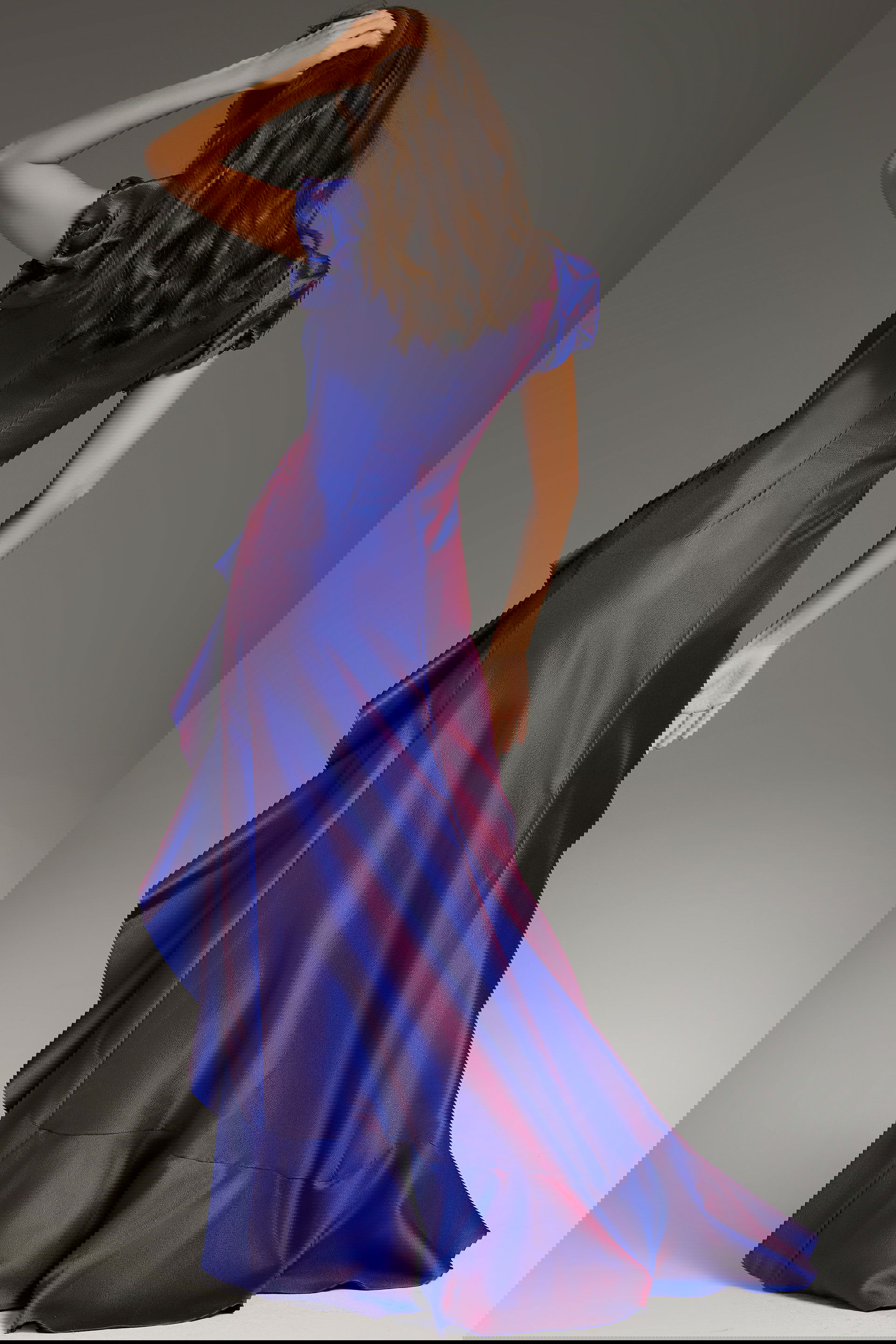 Bow Shoulder Short Sleeve Evening Gown 48945