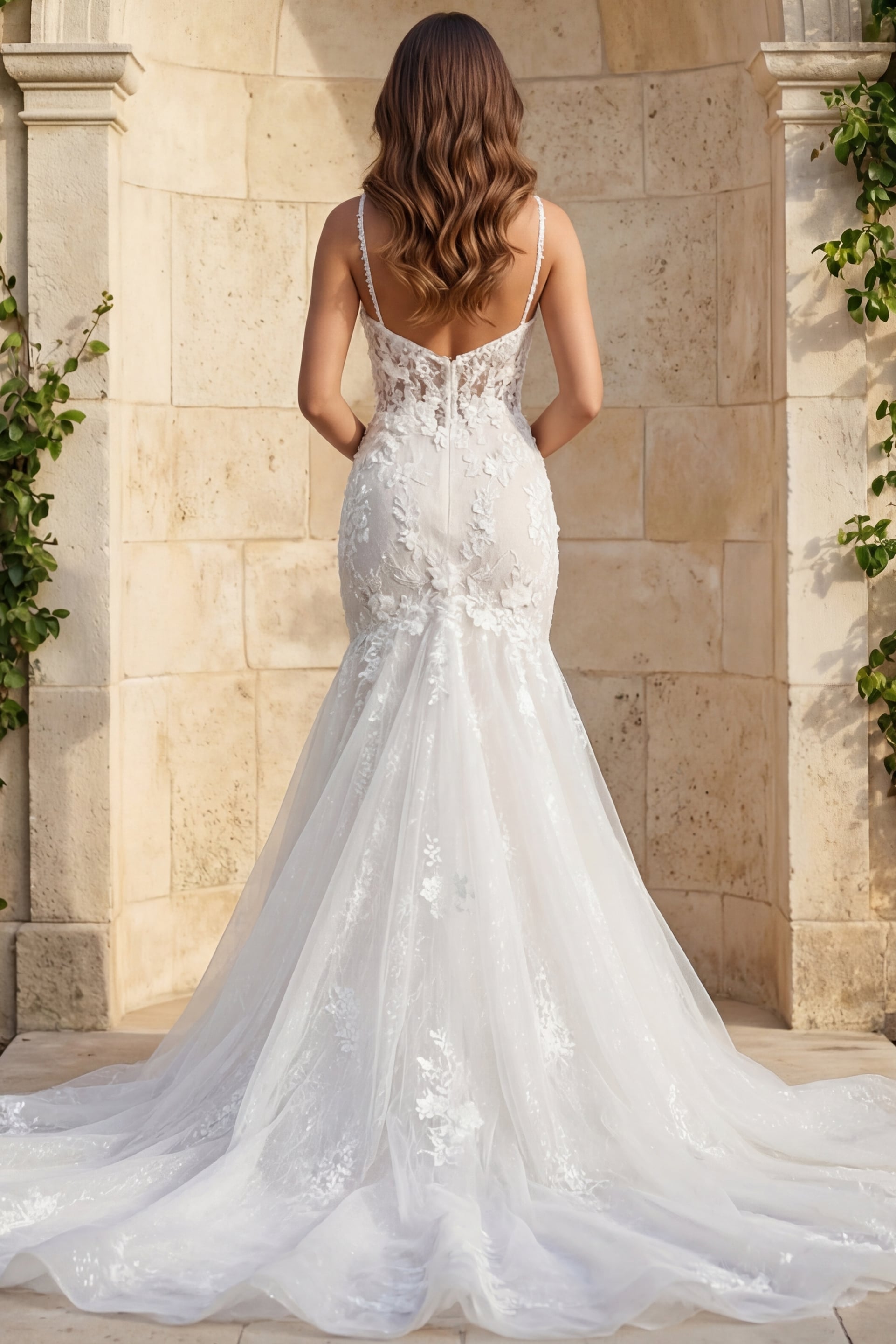 Elegant Mermaid Lace Wedding Dress with Floral Appliqué JB42484. This exquisite dress features a mermaid silhouette that perfectly enhances your figure, fitted through the bodice and hips, and gracefully flaring out at the knee. Adorned with intricate floral appliqué, this lace dress creates a romantic and timeless look. The sweetheart neckline adds a touch of femininity, while the floor-length design ensures an elegant presence as you walk down the aisle. Ideal for the bride seeking an elegant and luxurious gown for her special day.