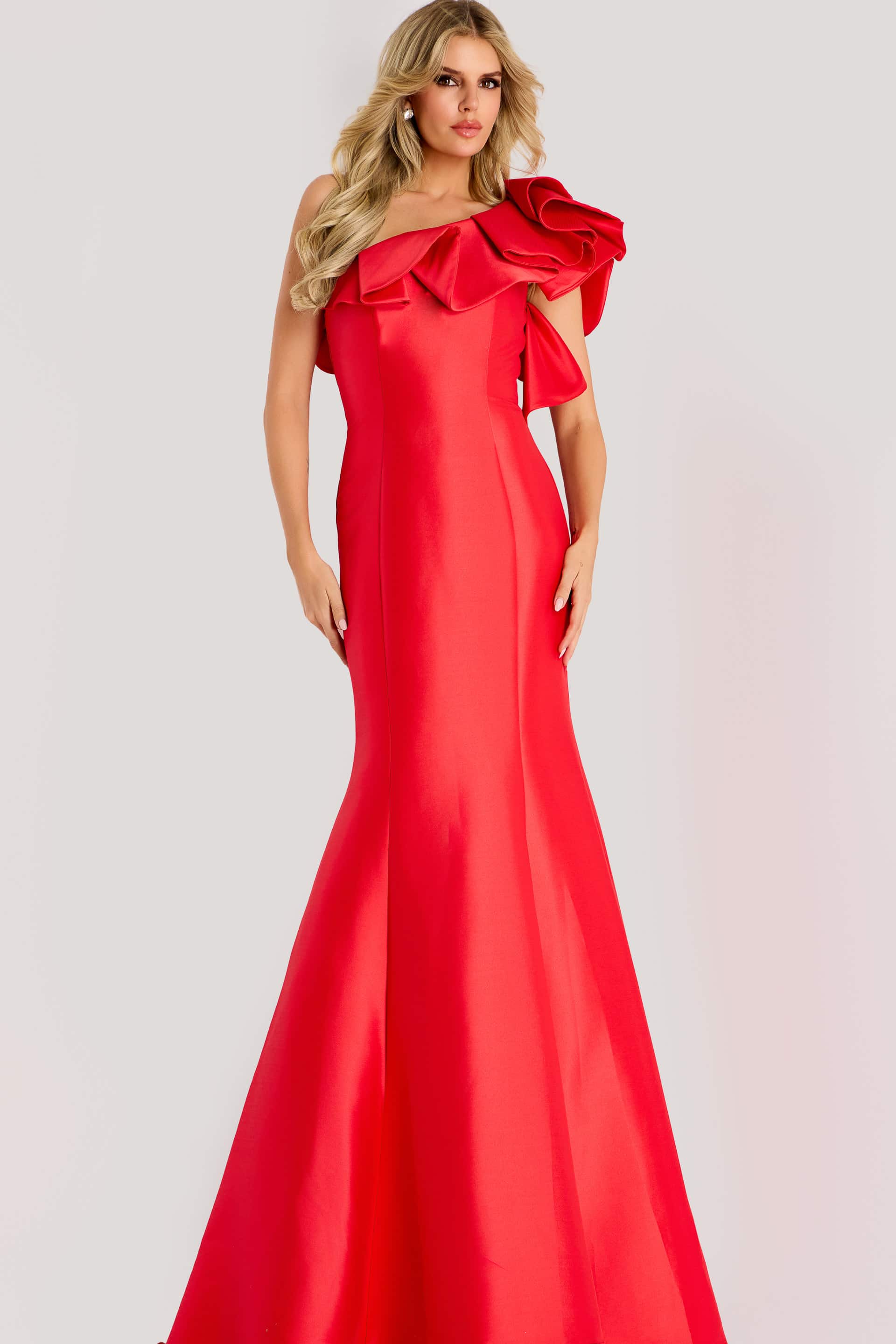 Elegant One Shoulder Ruffled Evening Gown 44527