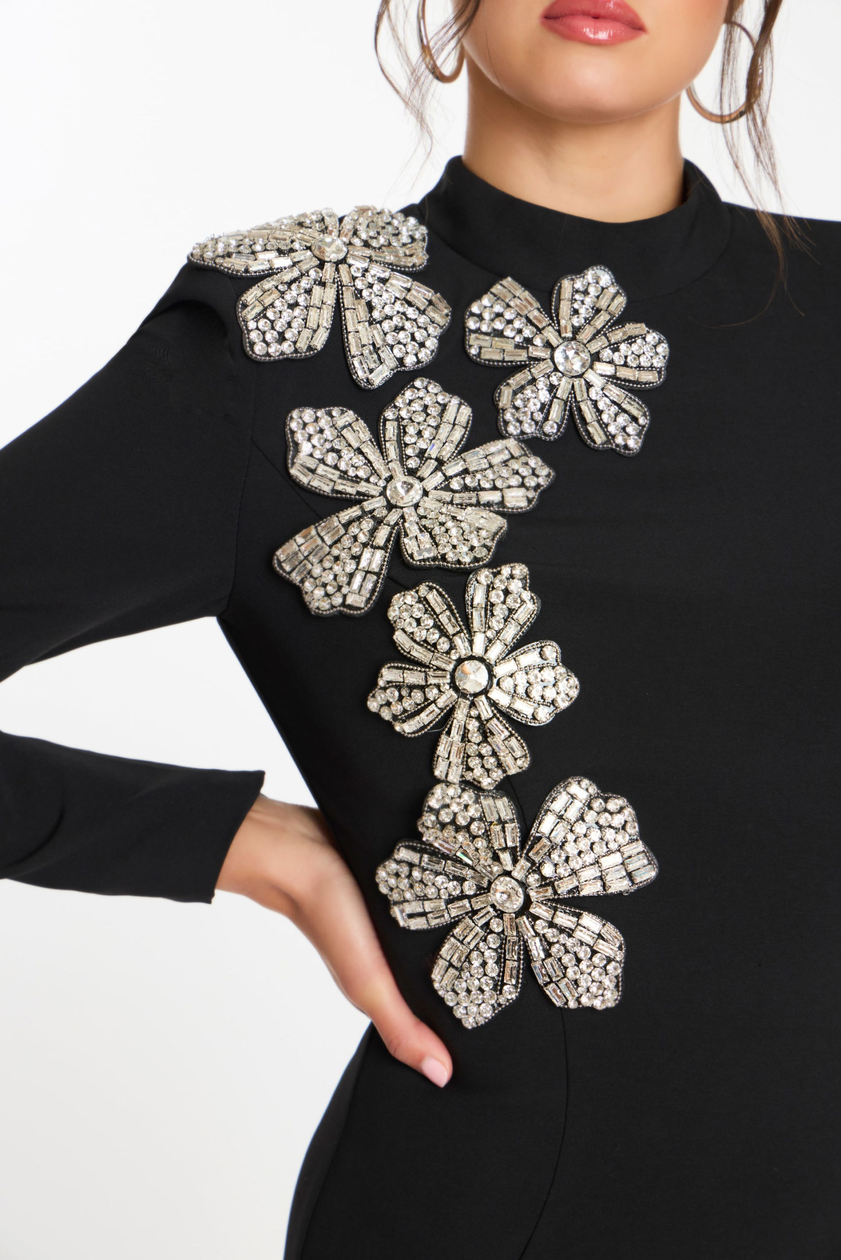Embellished Mini Dress With Open Back and Beaded Flowers 46005