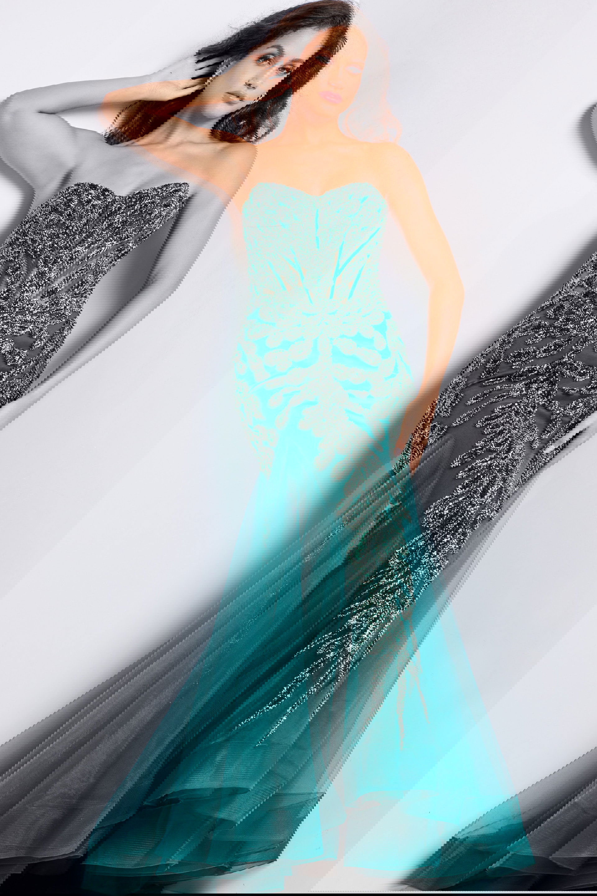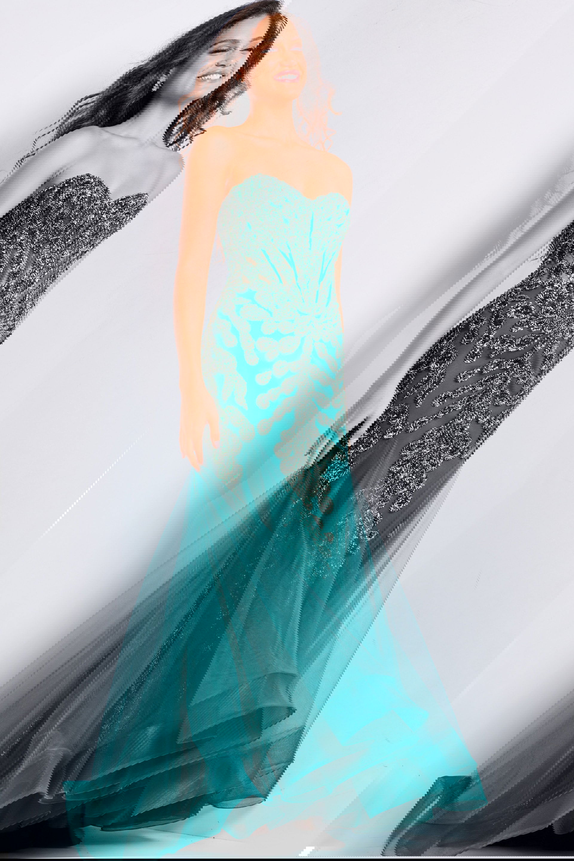 The Jovani 37412 is a stunning evening gown that seamlessly combines glamour and sophistication. Crafted from luxurious tulle, this mermaid-style dress is designed to make a statement at any formal event.