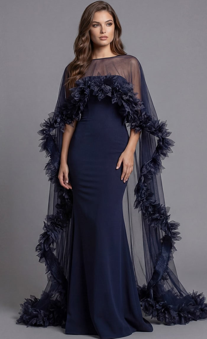 Off Shoulder Mermaid Gown with Bell Sleeves and Choker 45535