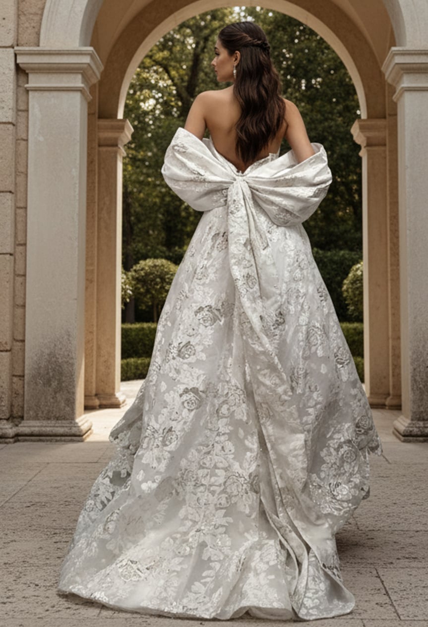 Floral Brocade Ball Gown With Dramatic Bow Train JB47701