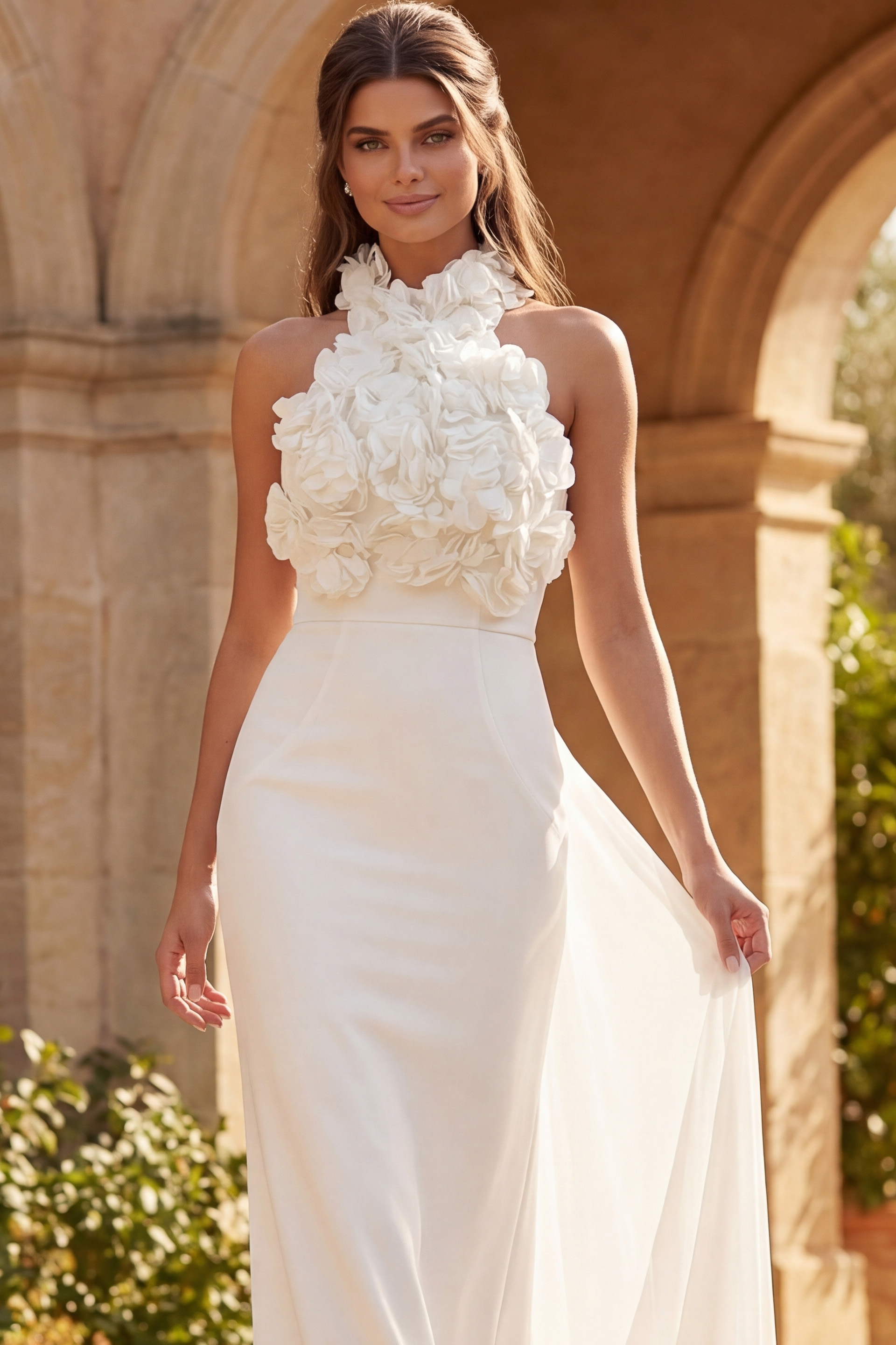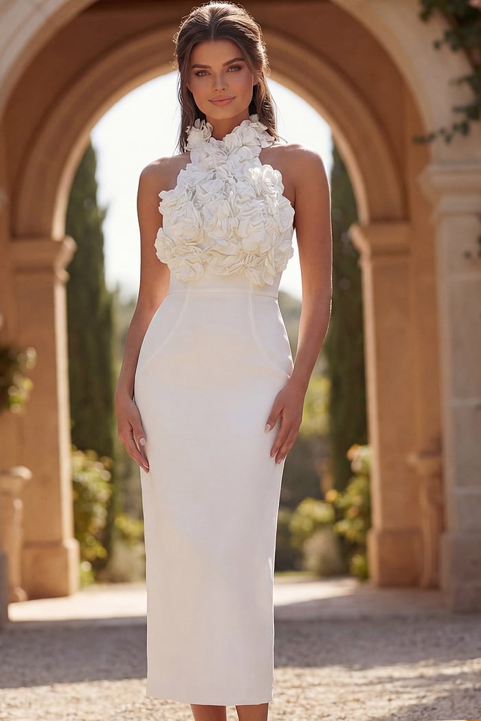Floral Halter Midi Dress with Sculpted Silhouette 48214