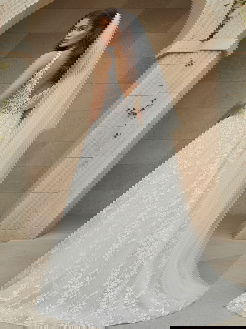 3D Floral Appliqués, Sheer Bodice, Flowing Layered Skirt