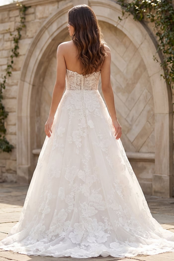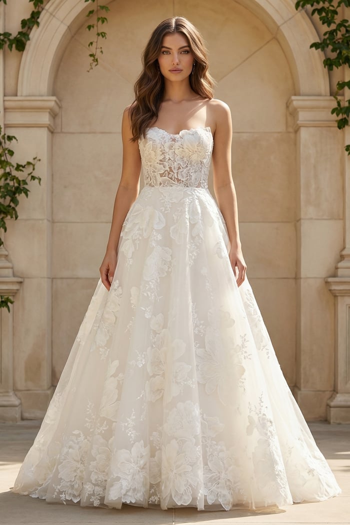 3D Floral Appliqués, Sheer Corset Bodice, Layered Skirt