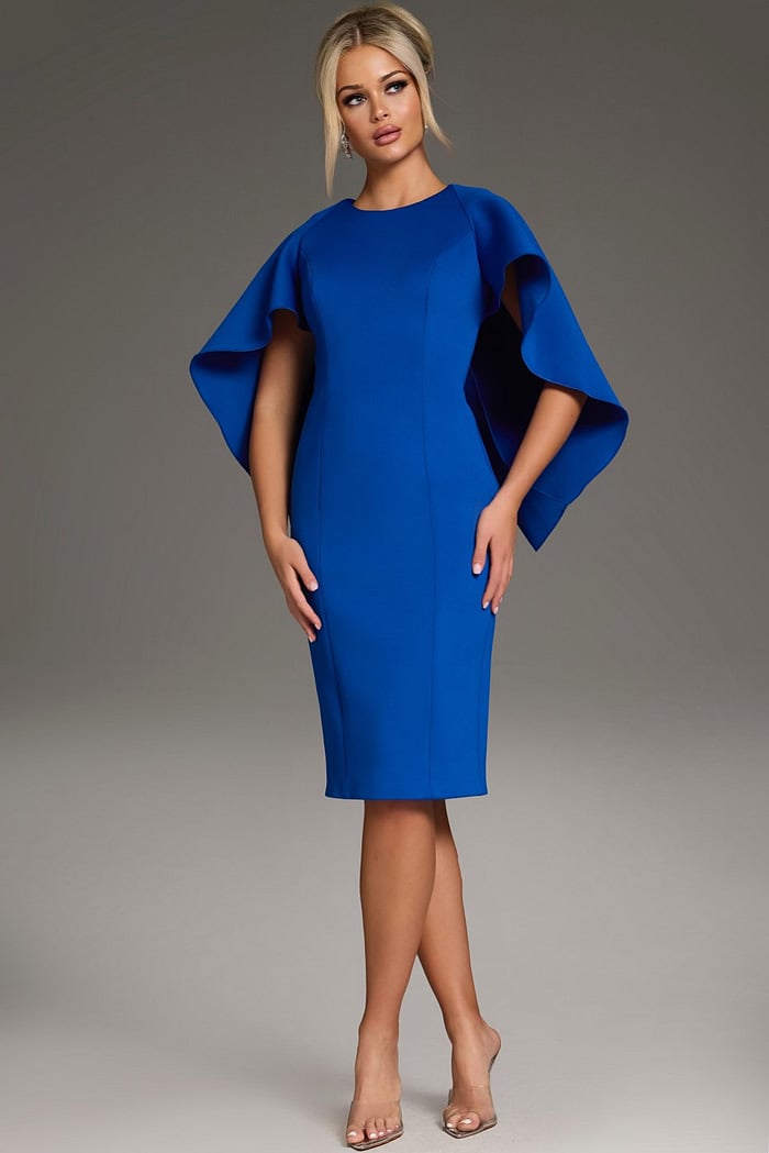 Embrace timeless elegance with this chic sheath dress. The dress features a sophisticated knee-length design and a classic round neckline. Its standout flutter sleeves add a touch of drama, cascading gracefully for an effortlessly stylish look. The back is adorned with a large bow, offering a unique and charming detail that makes this dress perfect for any special occasion.