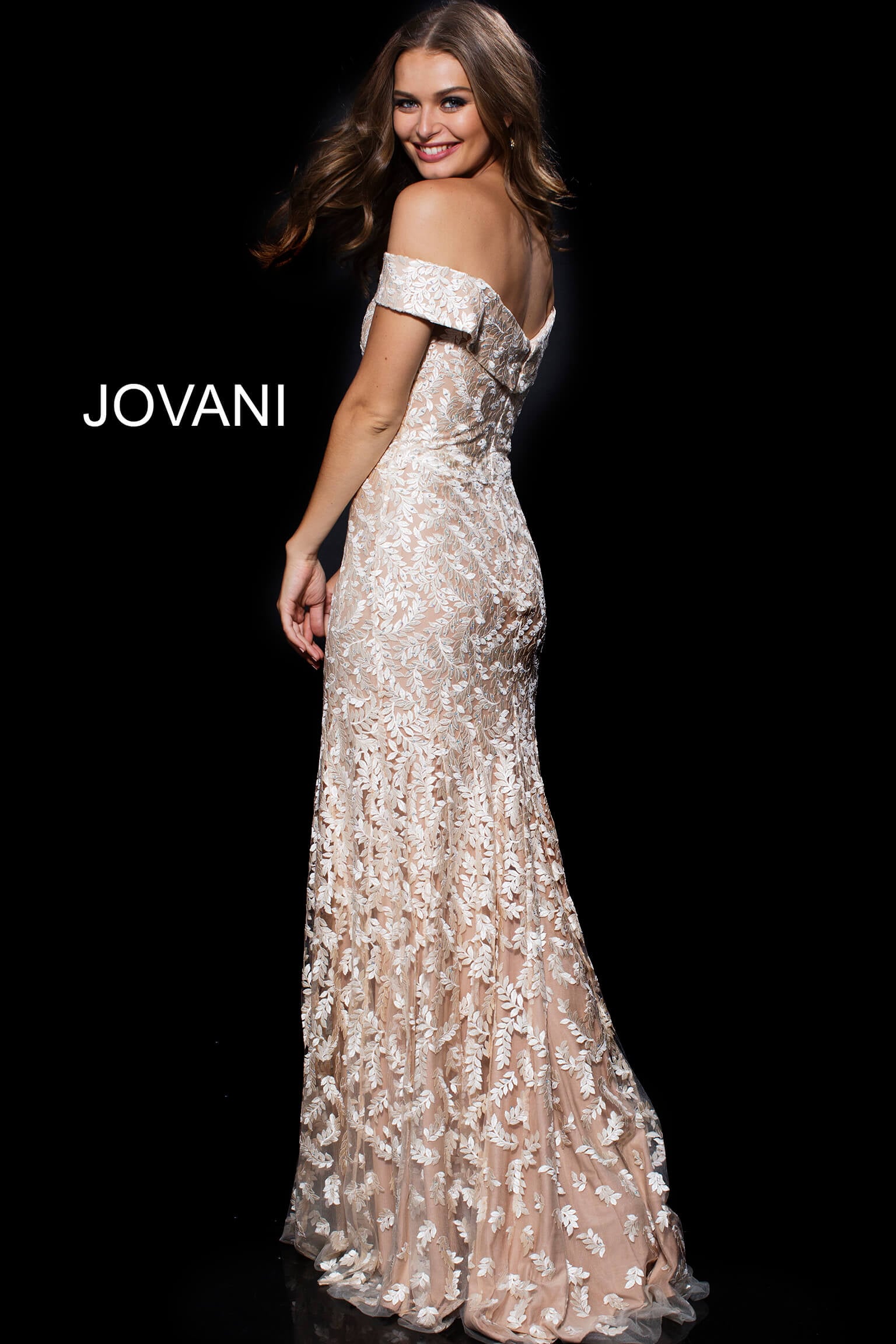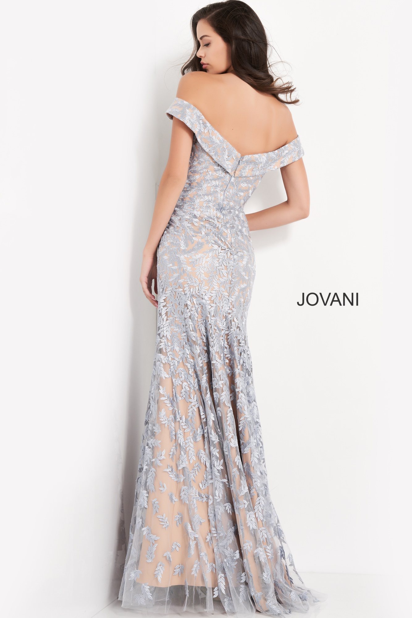 Jovani 49634 Off the Shoulder Embroidered Mother of the Bride Dress is an exquisite choice for any special occasion. This elegant gown features an intricate lace fabric adorned with beaded details, creating a stunning and sophisticated look. The off-the-shoulder neckline gracefully frames the shoulders, while the long, floor-length skirt adds a touch of classic elegance. The dress has a fit and flare silhouette that enhances the natural curves, offering a flattering and beautiful appearance. Ideal for mothers of the bride or any formal event, this Jovani dress combines timeless style with contemporary charm, ensuring you look and feel your best.