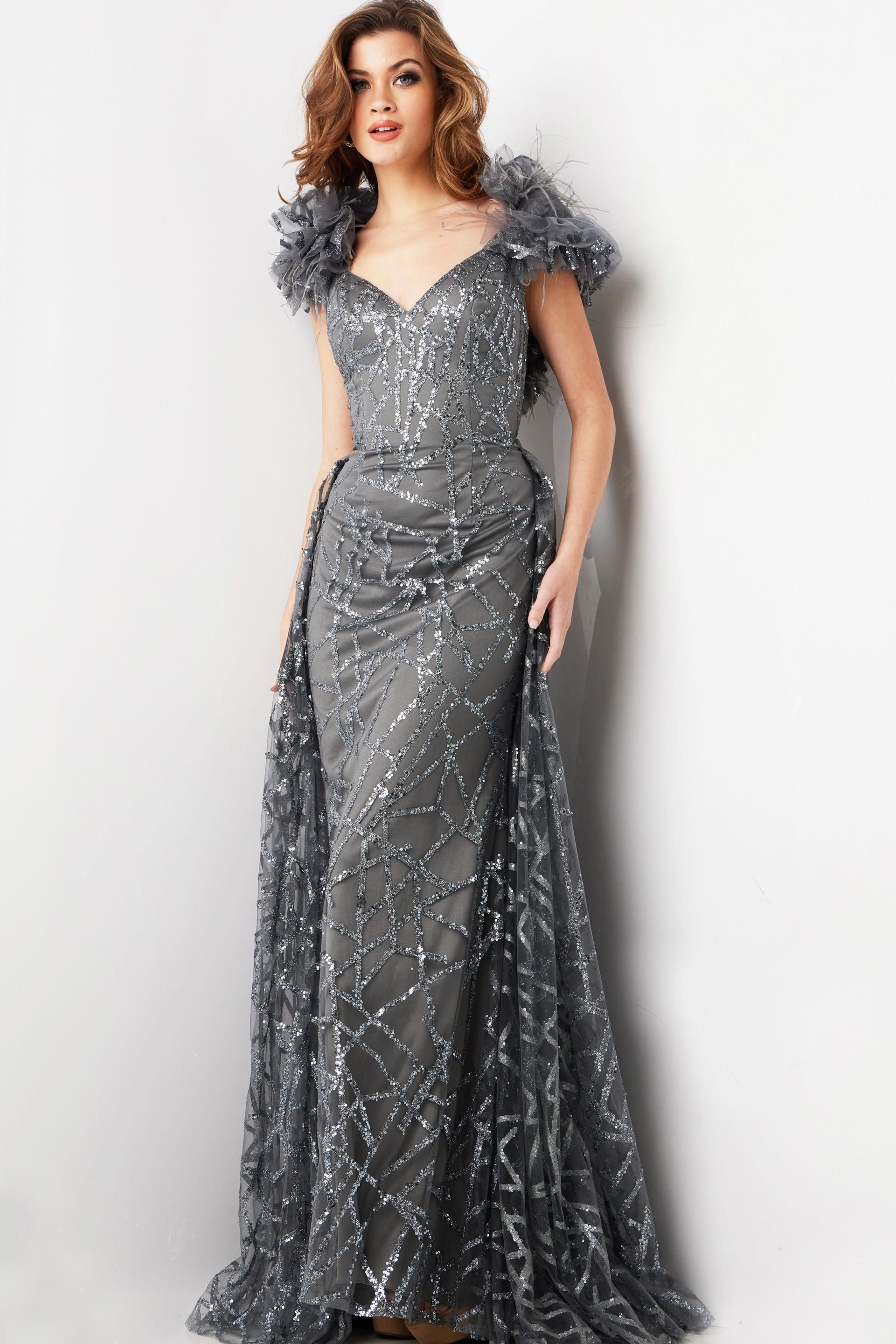 Available in a stunning gunmetal hue, this dress is sure to make a statement at any event. Carefully crafted to cater to various body types, it is available in sizes ranging from 00 to 24, ensuring a perfect fit for every woman. To maintain its pristine condition, spot dry cleaning is recommended. The Jovani 37206 dress is a true testament to timeless elegance and impeccable craftsmanship, making it an ideal choice for the mother of the bride.