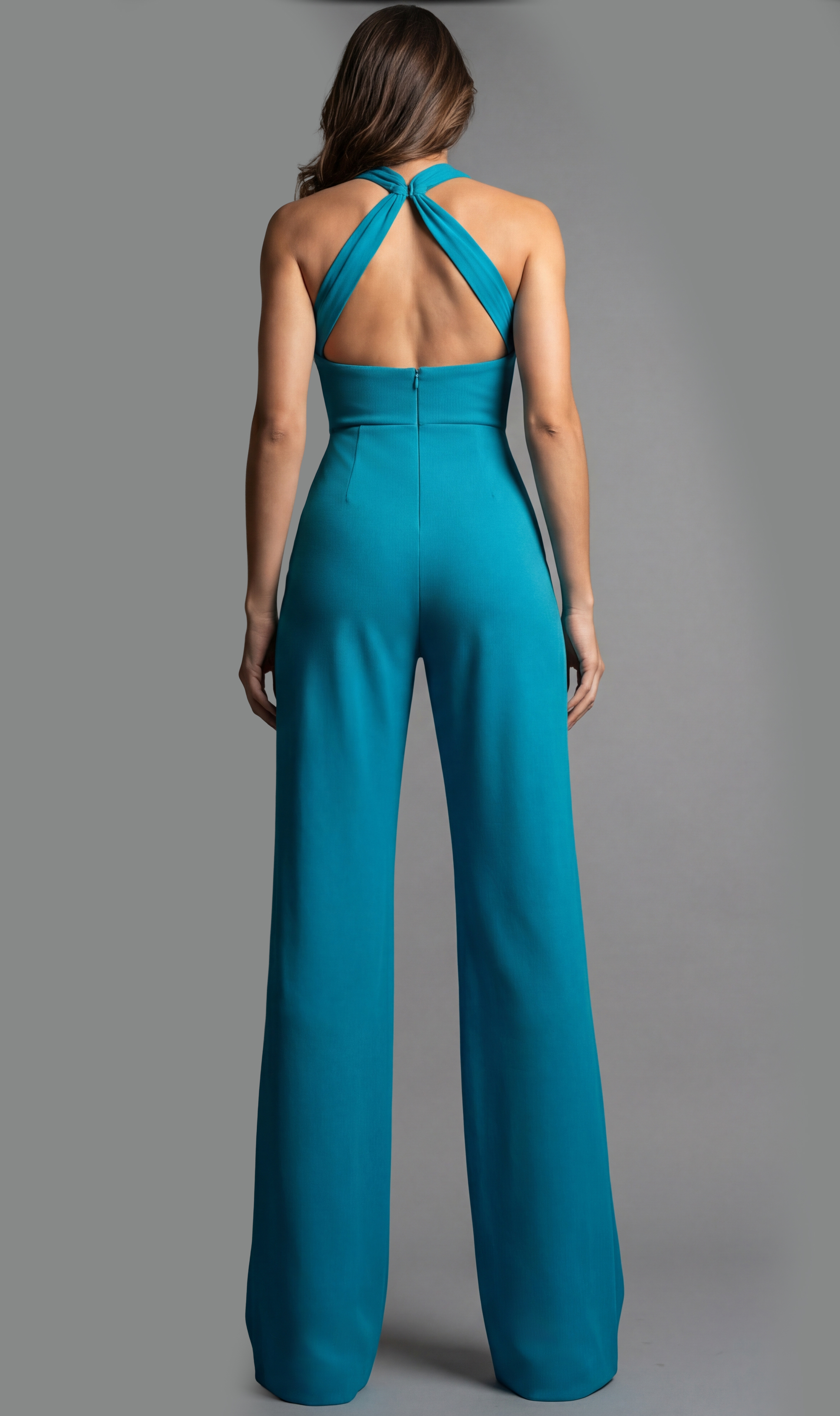 Halter Neck Wide Leg Evening Jumpsuit With Open Back 22542