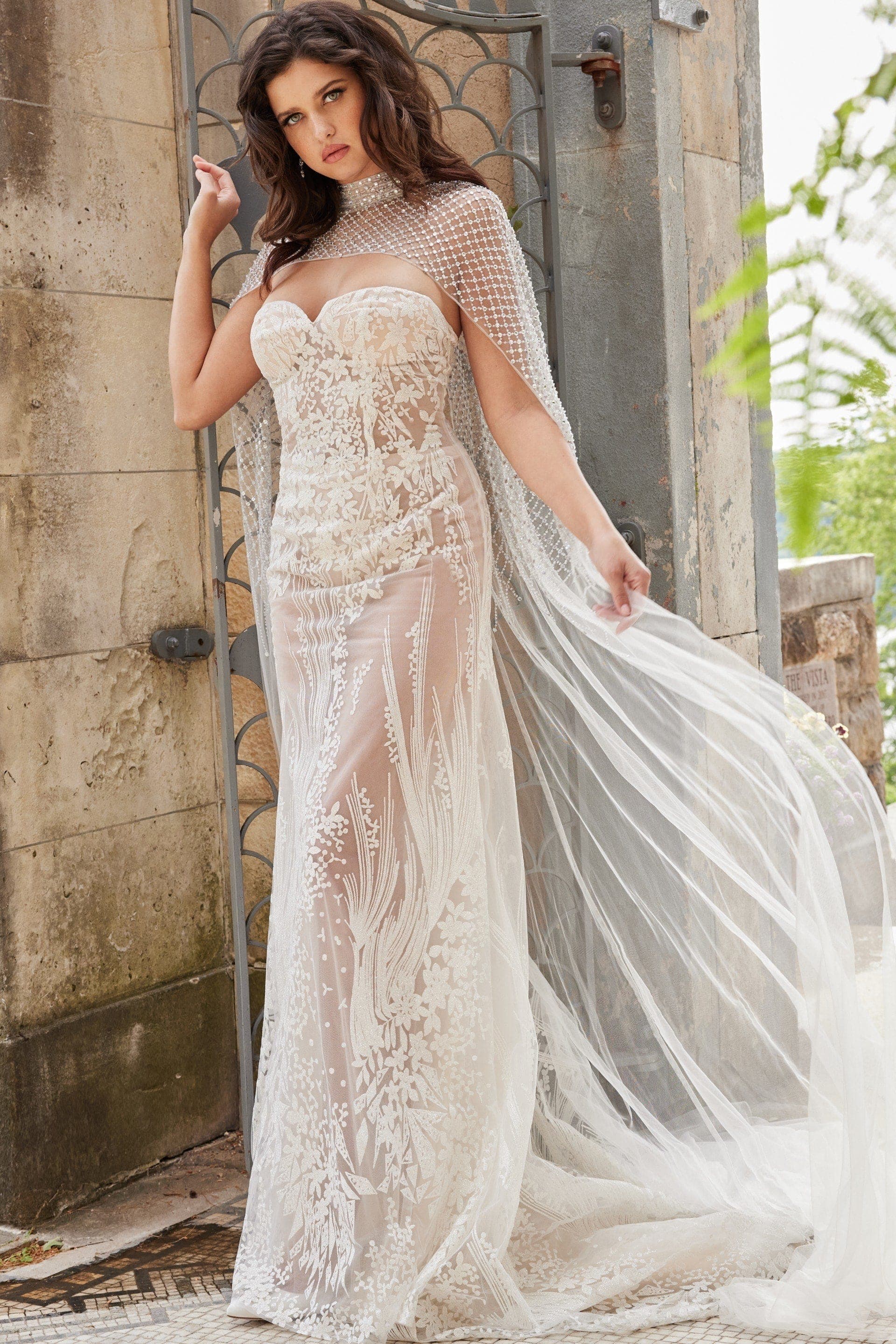 Ivory Lace Fitted Bridal Gown JB36547 – Embrace timeless elegance and grace with this stunning bridal creation. Crafted from delicate lace, this fitted gown exudes sophistication and charm. The intricate beaded details elevate the design, while the floor-length silhouette enhances the dreamy bridal look. Featuring a strapless sweetheart neckline, this gown is designed to make you feel like a true princess on your special day. Perfect for brides who appreciate luxurious fabrics and exquisite craftsmanship, the ivory lace fitted bridal gown is a captivating choice for any wedding ceremony.