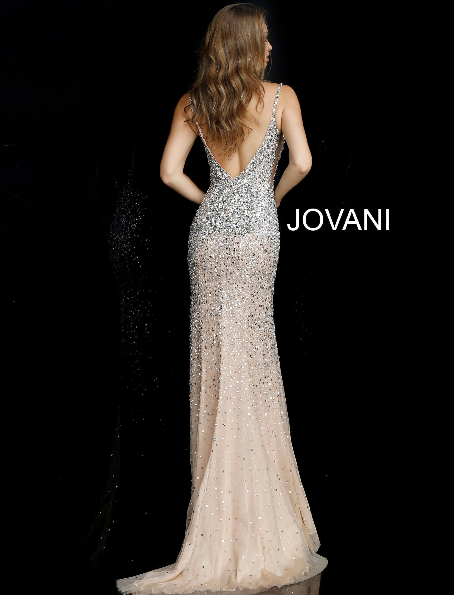 Jane Seymour in Jovani 57932 is a captivating evening gown designed to make a stunning statement at any formal event. This exquisite dress features a daring high slit and is adorned with dazzling sequins that catch the light beautifully. Crafted from luxurious sheer fabric, the gown has a graceful V-neckline and sleeveless design. Its sheath silhouette hugs your curves and extends into a floor-length hemline, providing a sophisticated and glamorous look. Perfect for red carpet events, galas, or elegant parties, this dress is a true embodiment of elegance and style.