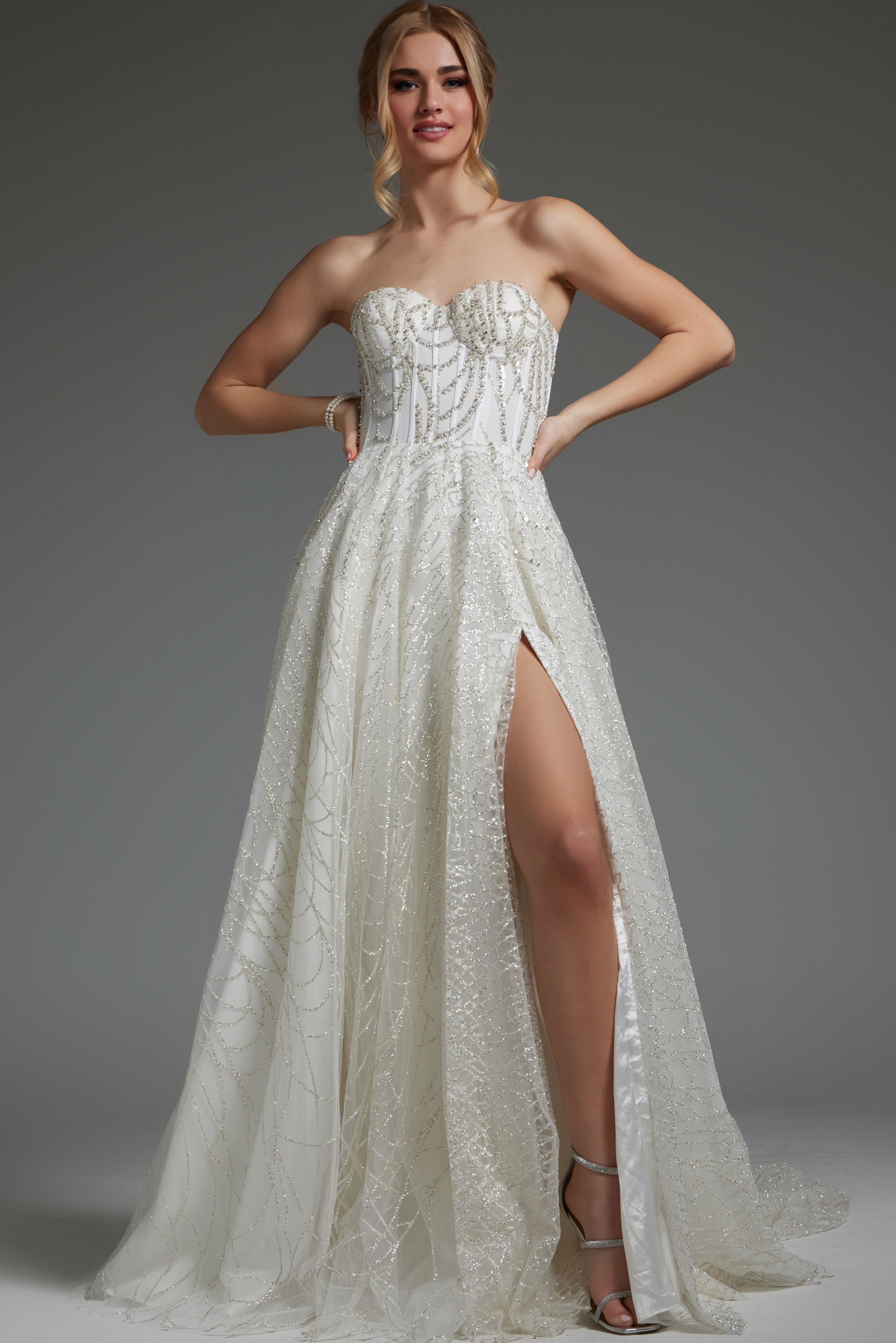 Glitter embellished beaded fitted corset bodice with boning