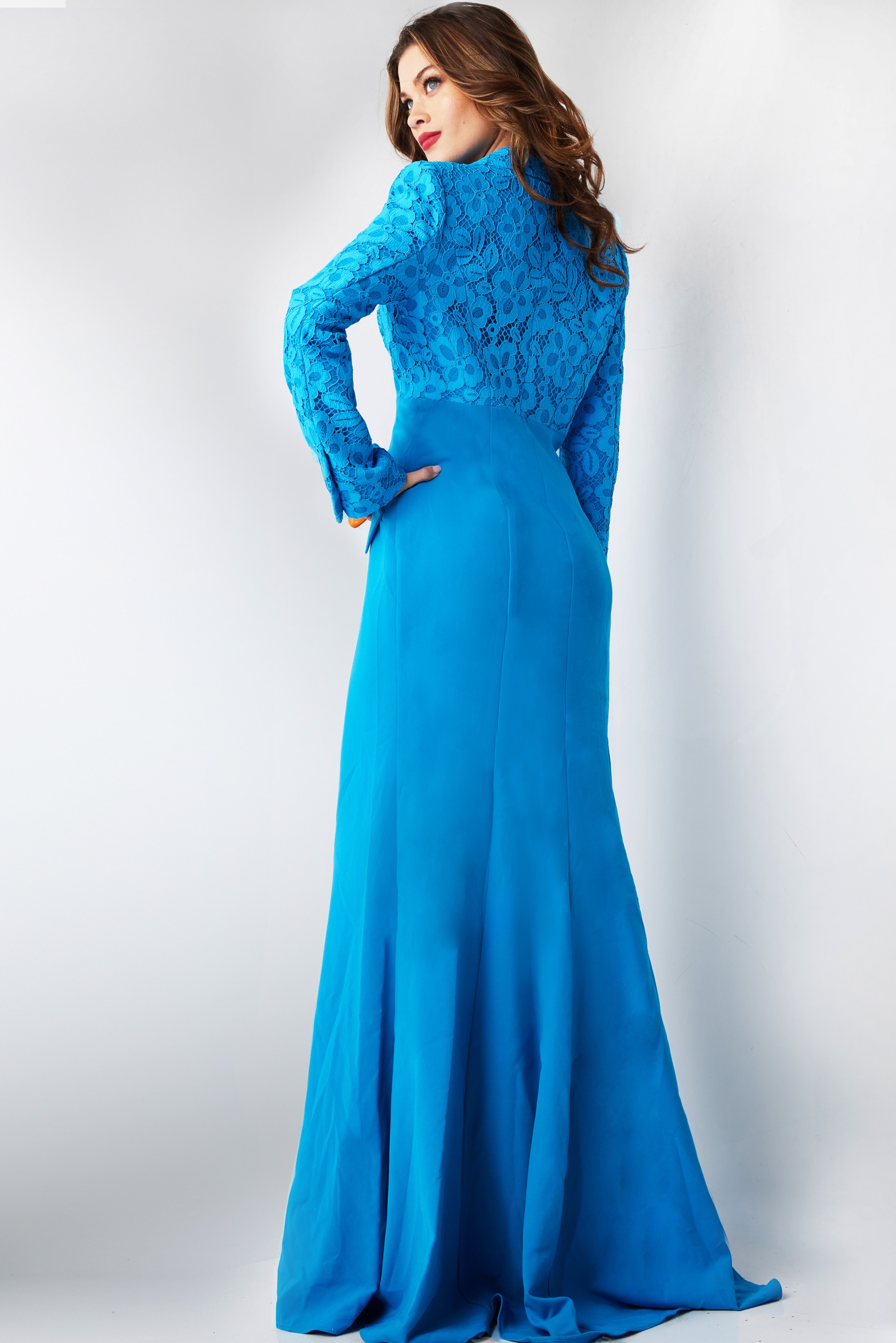 With a classic V-neckline and long sleeves, this gown strikes the perfect balance between elegance and allure, making it a versatile choice for any formal occasion.