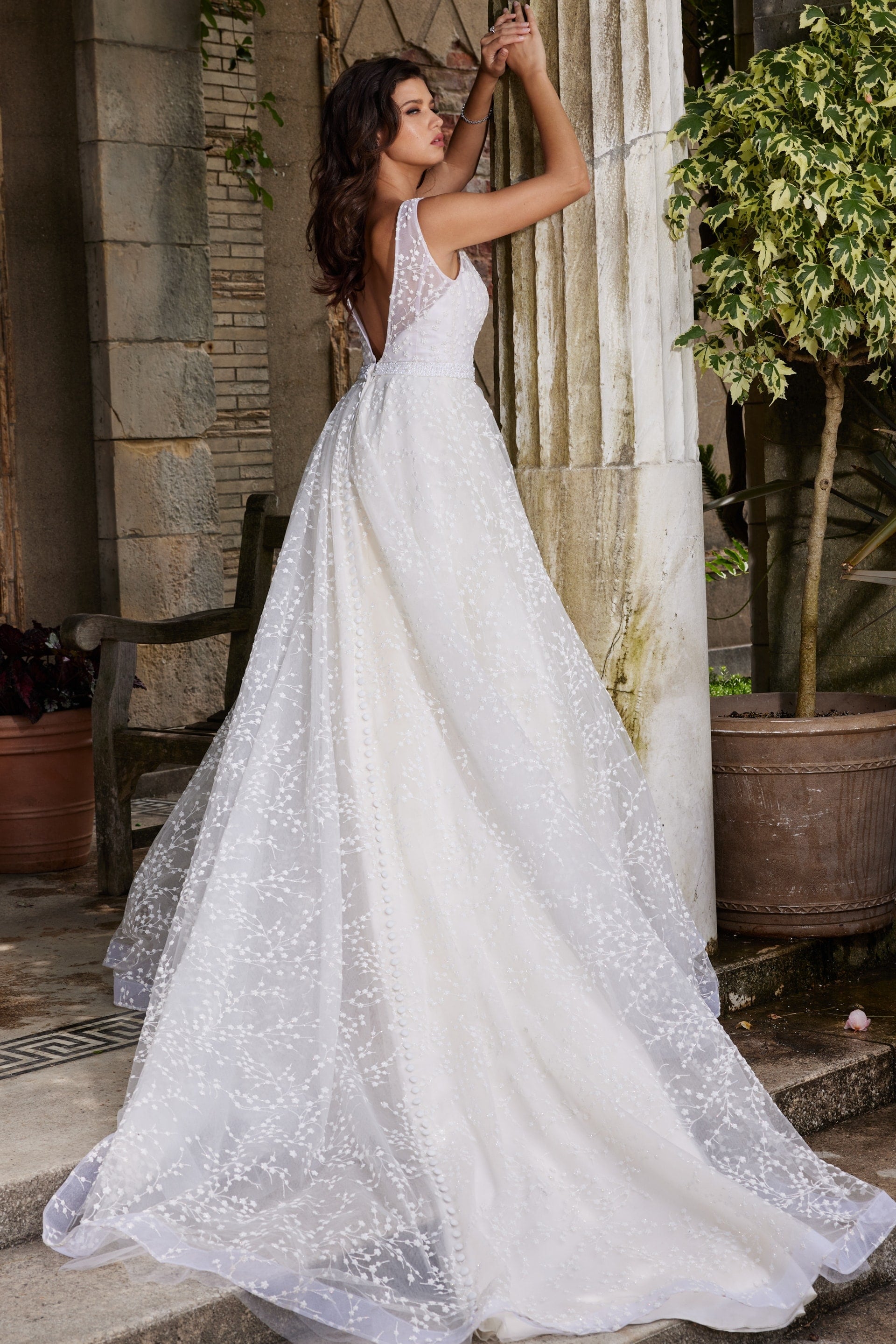 Off-White V-Neck Embellished Bridal Gown by Jovani Bridal JB09491