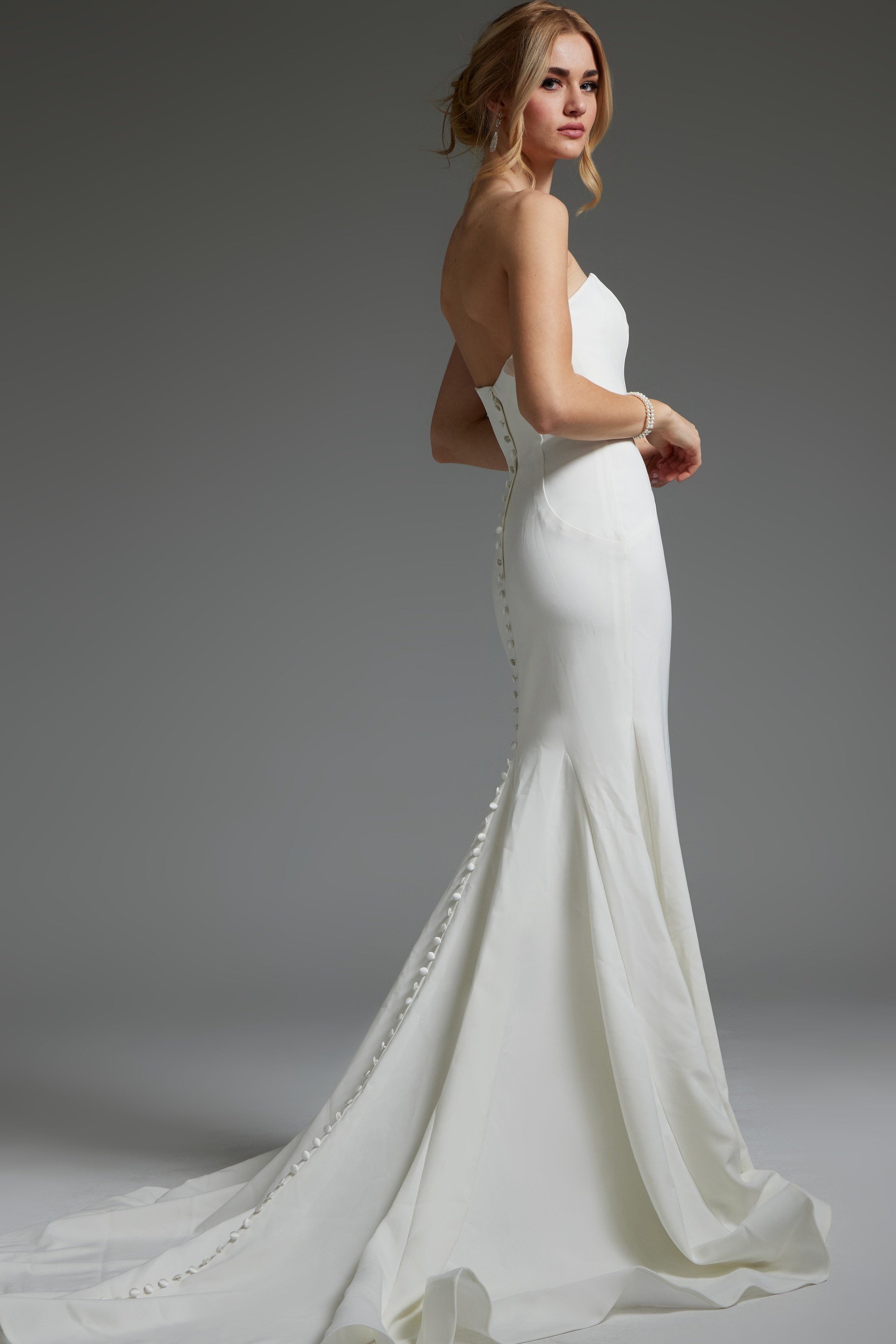Jovani JB06912 Ivory Strapless Sweetheart Neck Wedding Dress is the epitome of elegance and sophistication. With its mermaid silhouette, this gown hugs your curves and flares out delicately at the knees. The floor-length design adds a dramatic touch, perfect for any bride’s special day. Made from luxurious satin, this sleeveless dress features a flattering strapless sweetheart neckline, enhancing your natural beauty. The back style is closed, ensuring a snug and secure fit. Whether you’re walking down the aisle or dancing the night away, this dress will make you feel confident and beautiful.