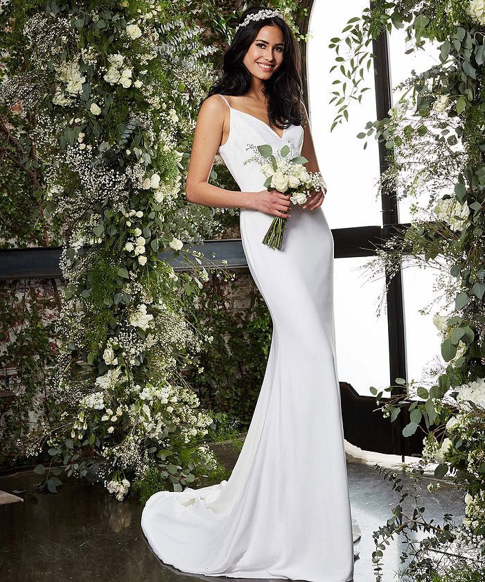The Jovani JB2507 Ivory Spaghetti Strap Bridal Dress epitomizes timeless elegance and sophisticated charm. This exquisite bridal gown features a sleek sheath silhouette that effortlessly drapes to the floor, creating a statuesque figure. Crafted from luxurious satin fabric, the dress boasts a flattering sleeveless design with delicate spaghetti straps and a classic V-neckline. Ideal for a minimalist and chic wedding look, this bridal dress ensures you shine with grace and poise on your special day.