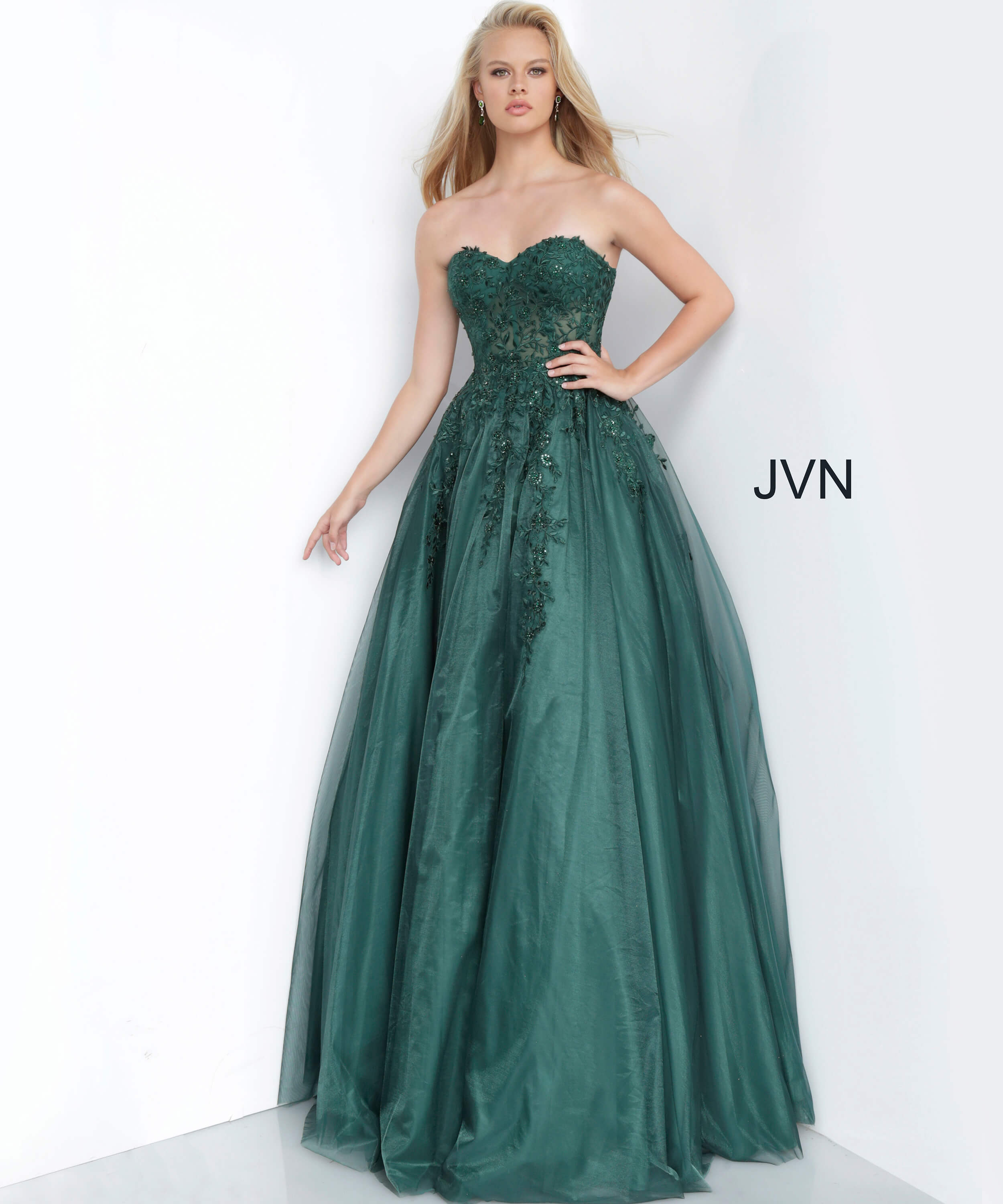 Make a statement in this stunning Strapless Beaded Ballgown. This exquisite dress features a sweetheart neckline and a full-length floor skirt, crafted from luxurious tulle fabric. Detailed with intricate beading, it offers a perfect blend of elegance and sophistication. The closed back completes the look, making it ideal for special occasions where you want to leave a lasting impression.