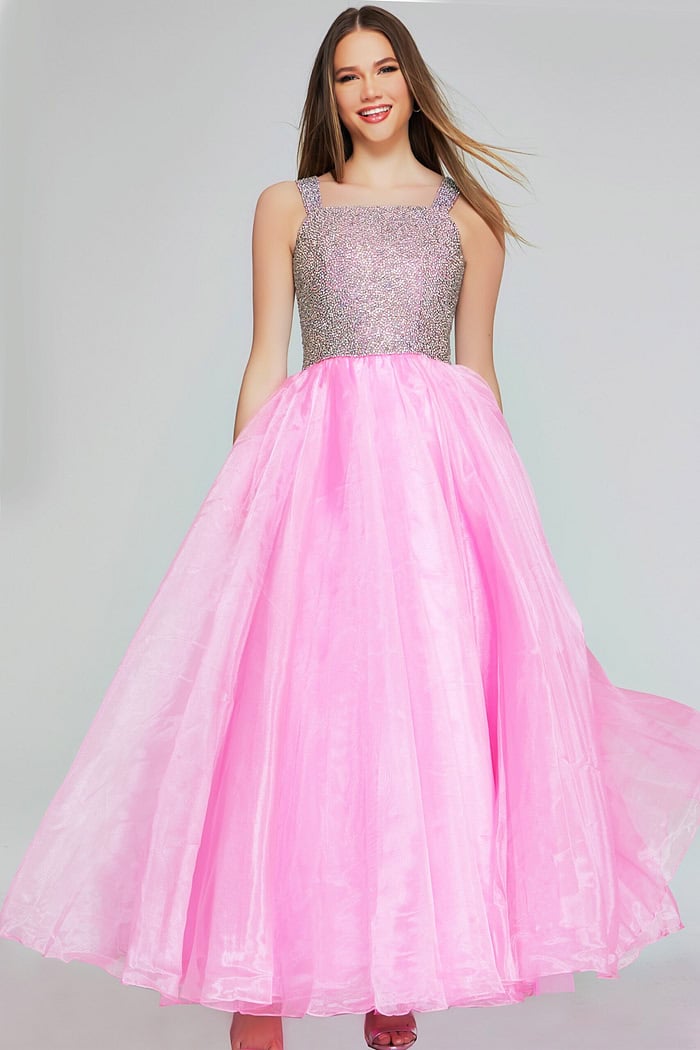 Make a grand entrance with this stunning ballgown featuring a square neckline and a beaded bodice. The floor-length skirt made of flowy organza adds elegance and movement, while the sleeveless design ensures comfort and style. Perfect for any formal occasion, this gown combines sparkle with classic elegance.