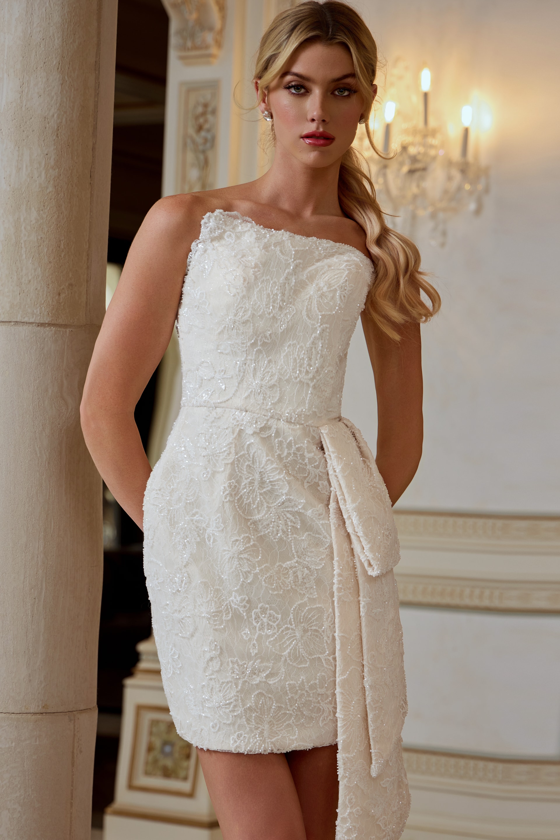 Lace Mini Dress with Draped Detail 45260